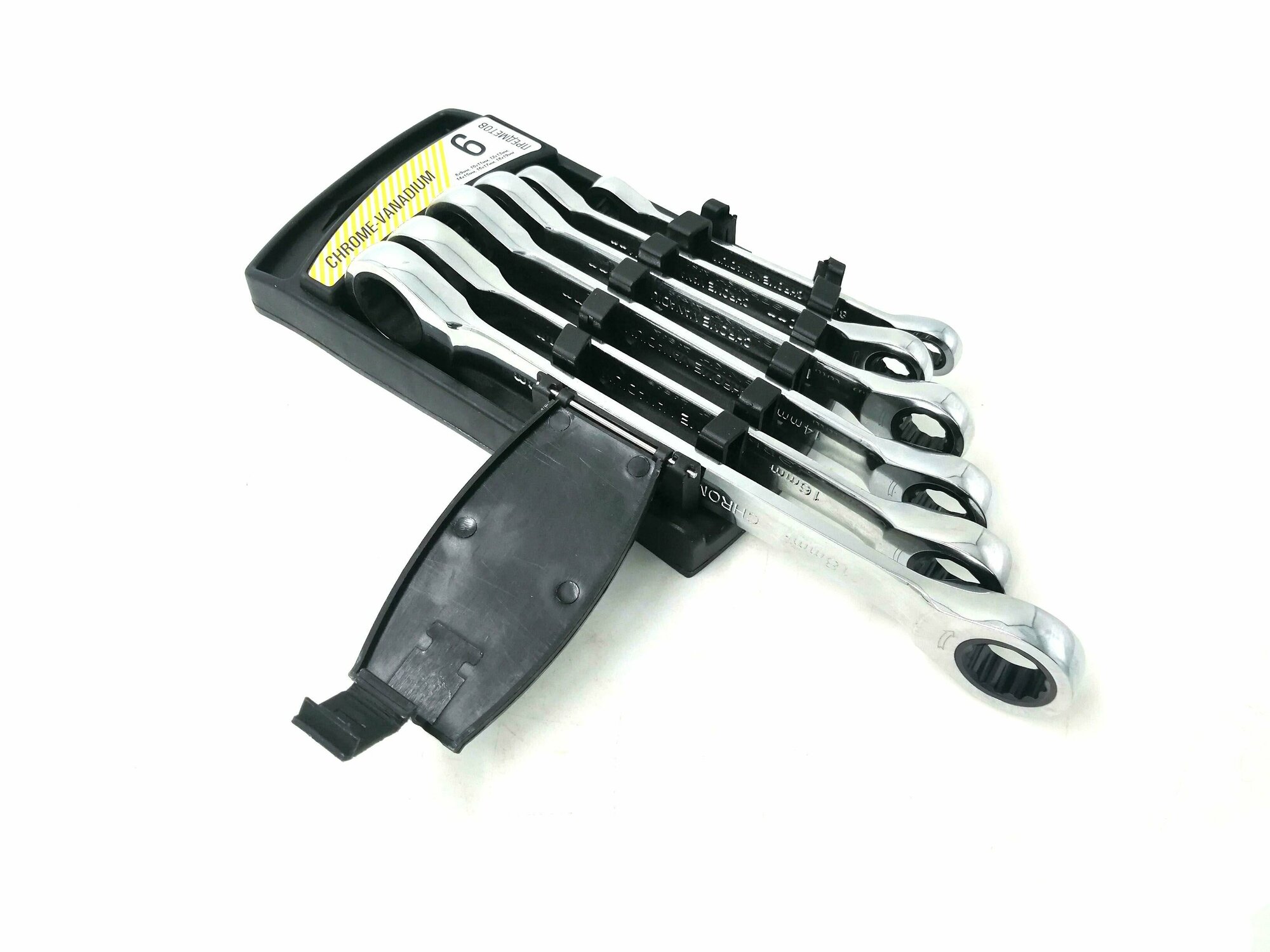 Набор ключей накидных Эврика , трещоточных, 6 предметов, 8x9, 10x11, 12x13, 14x15, 16x17, 18x19, на держателе - это комплект из 6 инструментов для работы с шестигранным крепежом. Ключи оснащены трещоточным механизмом, что упрощает монтаж и демонтаж крепежа, особенно в труднодоступных местах.Преимущества Трещоточный механизм Прочный материал Защитное покрытие Универсальность Удобная упаковка