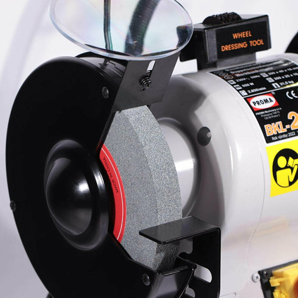 Двухдисковый заточный станок с подсветкой Proma 25450200 используется в бытовых условиях, а также на производствах для зачистки, заточки, огранки, снятия фасок, полировки и шлифовки. Станок может устанавливаться на подставку, что делает его устойчивым и снижает вибрации. Экономичный электродвигатель потребляет всего 550 Вт и не вызывает перегрузок в бытовой сети электроснабжения.