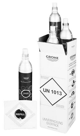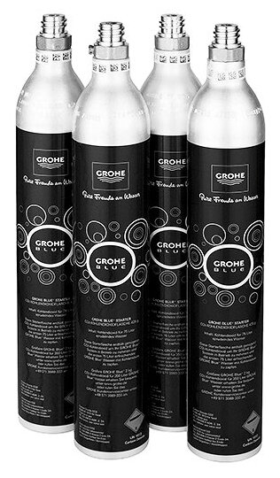 Насладитесь вкусной охлажденной фильтрованной или газированной водой прямо из смесителя у вас дома в любой время дня и ночи. Стартовый комплект GROHE Blue включает в себя 4 баллона CO2 по 425 г каждый, чтобы обеспечить вас чистейшей газированной и питьевой водой из вашего смесителя GROHE Blue - это гарантирует, что вы всегда сможете освежиться, ведь каждый баллон рассчитан на 75 л газированной воды. Вы можете быть уверены, что каждая капля воды из вашего смесителя обладает простым, чистым и приятным вкусом, благодаря тому, что - в отличие от других производителей - GROHE предлагает CO2 только из натуральных источников, с чистотой в 99,9%. Газированная вода также помогает регулировать кислотно-щелочной баланс в организме для хорошего здоровья. Эти баллоны легко транспортировать и их можно установить всего за 30 секунд - выкрутите старый баллон и вкрутите новый. Процесс не мог бы быть более простым и безопасным. Как только у вас будет комплект из 4 пустых баллонов, вы сможете заказать перезаправку баллонов GROHE Blue (-REF).