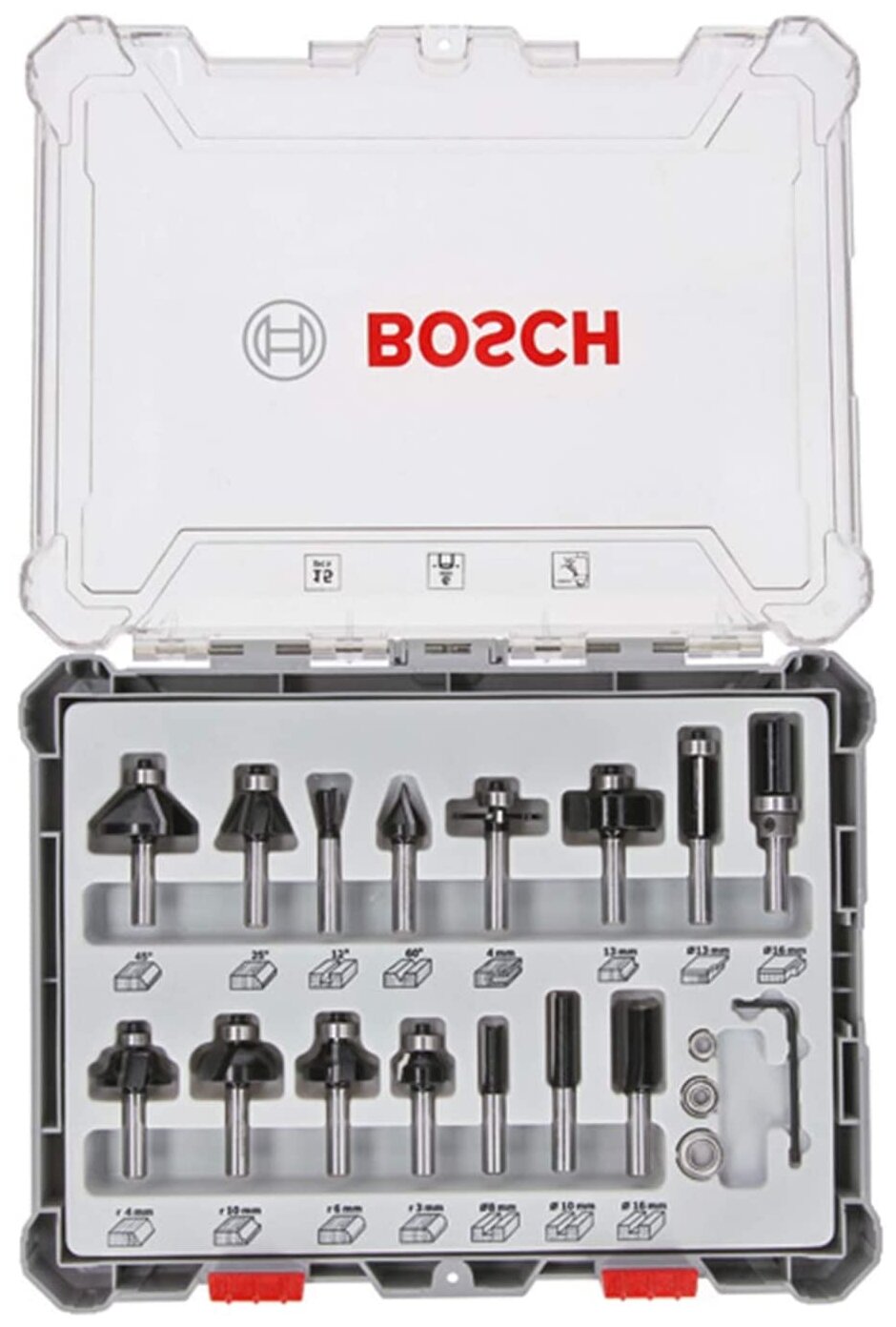 Набор фрез по дер. Bosch 2607017471 d(посад.)=6мм (фрезеры) (упак.:15шт)
