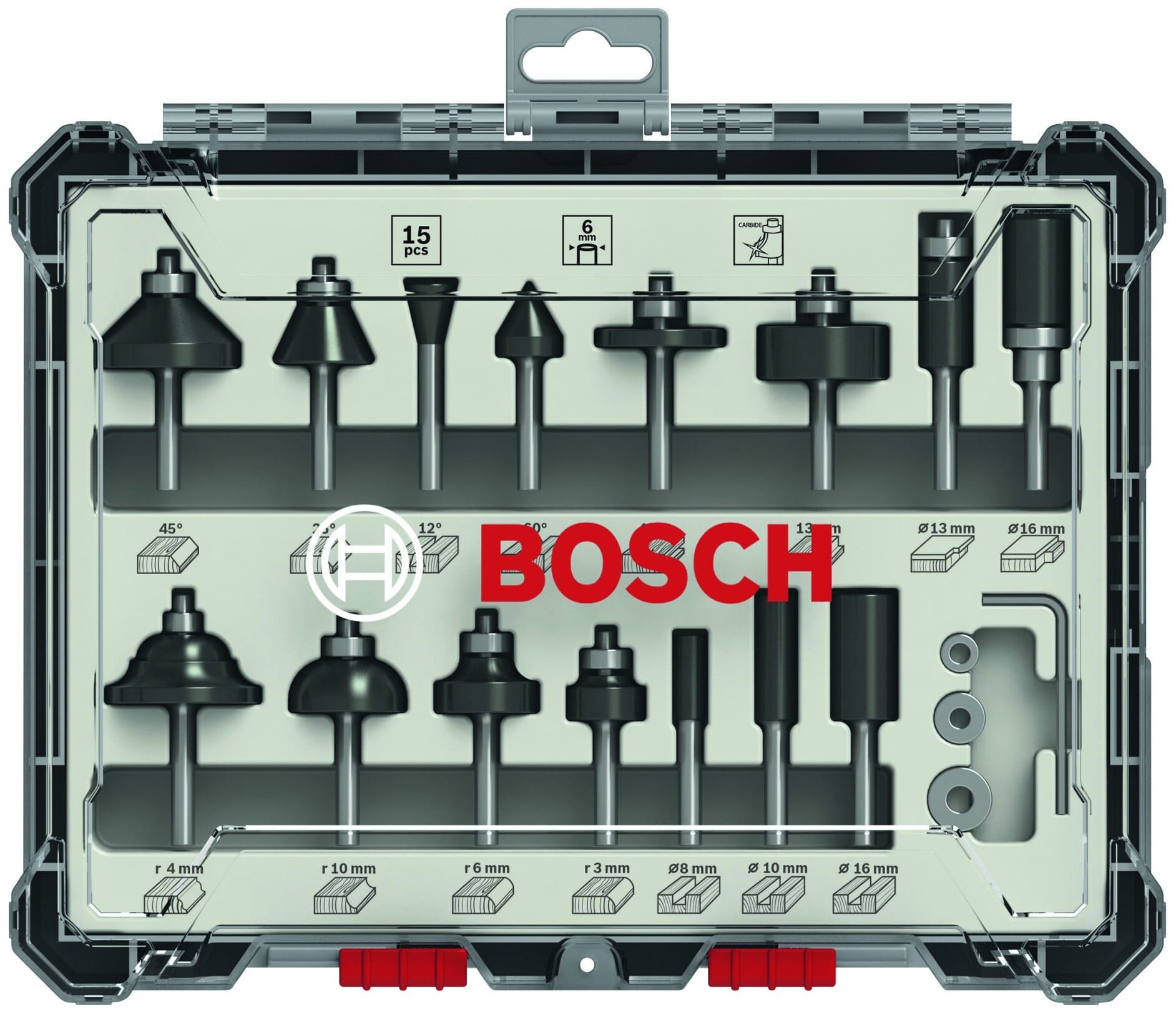 Набор фрез Bosch 15шт., хвостовик 6мм (2 607 017 471)