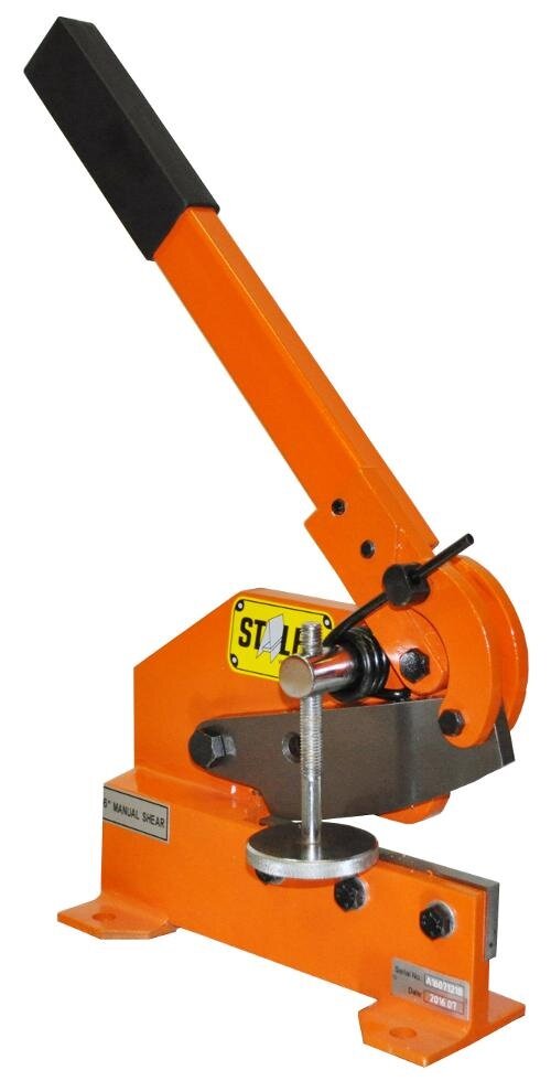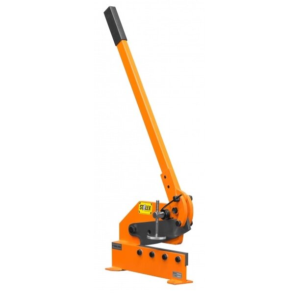 Ножницы рычажные Stalex серии HS – прочный универсальный резчик для листовой, полосовой стали, а так же круглого прутка. Станок способен резать круглые заготовки диаметром до 13 мм, листовая сталь толщиной до 6 мм и полосы размером до 70х6 мм. Ножницы оснащены прочным прижимом, регулируемым по высоте и высококачественными режущими ножами. Для резки круглого прутка на верхнем режущем ноже предусмотрено специальное отверстие.Характеристики:Макс. толщина листа (для низкоуглеродистой стали) на макс. длину ножа, мм: 4 Длина ножа, мм: 304,8 (12") Максимальная толщина листовой стали, мм: 6 Максимальный размер полосы, мм: 70х6Максимальный размер круглой заготовки, мм: 13 Габариты, см: 74/15/44 Масса нетто/брутто, кг: 26/28*Параметр максимальной толщины является справочным (т. к. это зависит от марки металла, термообработки, а также его длины и толщины) и действует на низкоуглеродистую или мягкую сталь, при условии хорошей фиксации станка к полу, тумбе или верстаку.