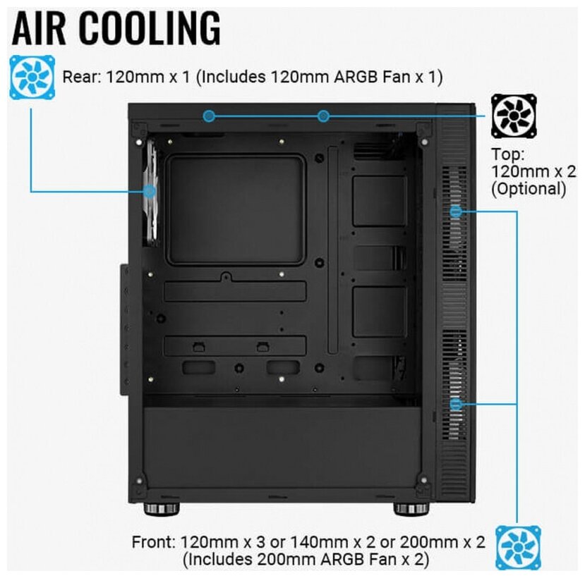 | Встроенные вентиляторы | 1 x 120 мм, 2 x 200 мм |