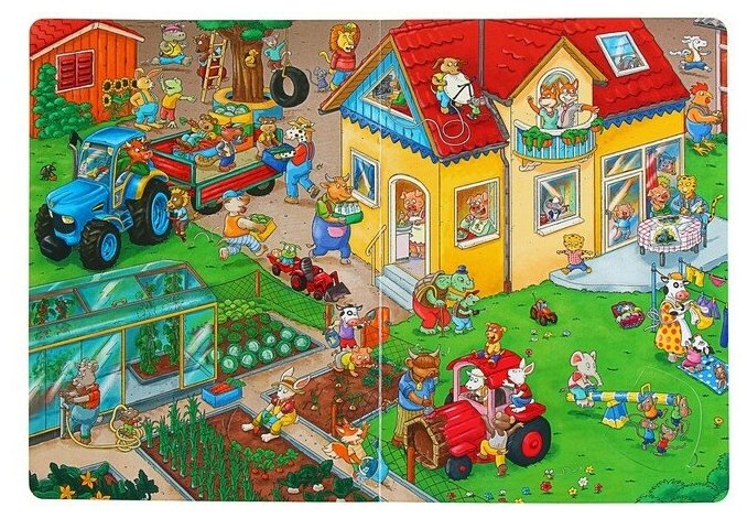 Яркие забавные иллюстрации покажут ребенку деревенскую жизнь. Главные герои – животные, которые заняты своими делами, – следить за их приключениями так увлекательно! А открыв каждое из 30 окошек, можно найти дополнительные сюжеты.