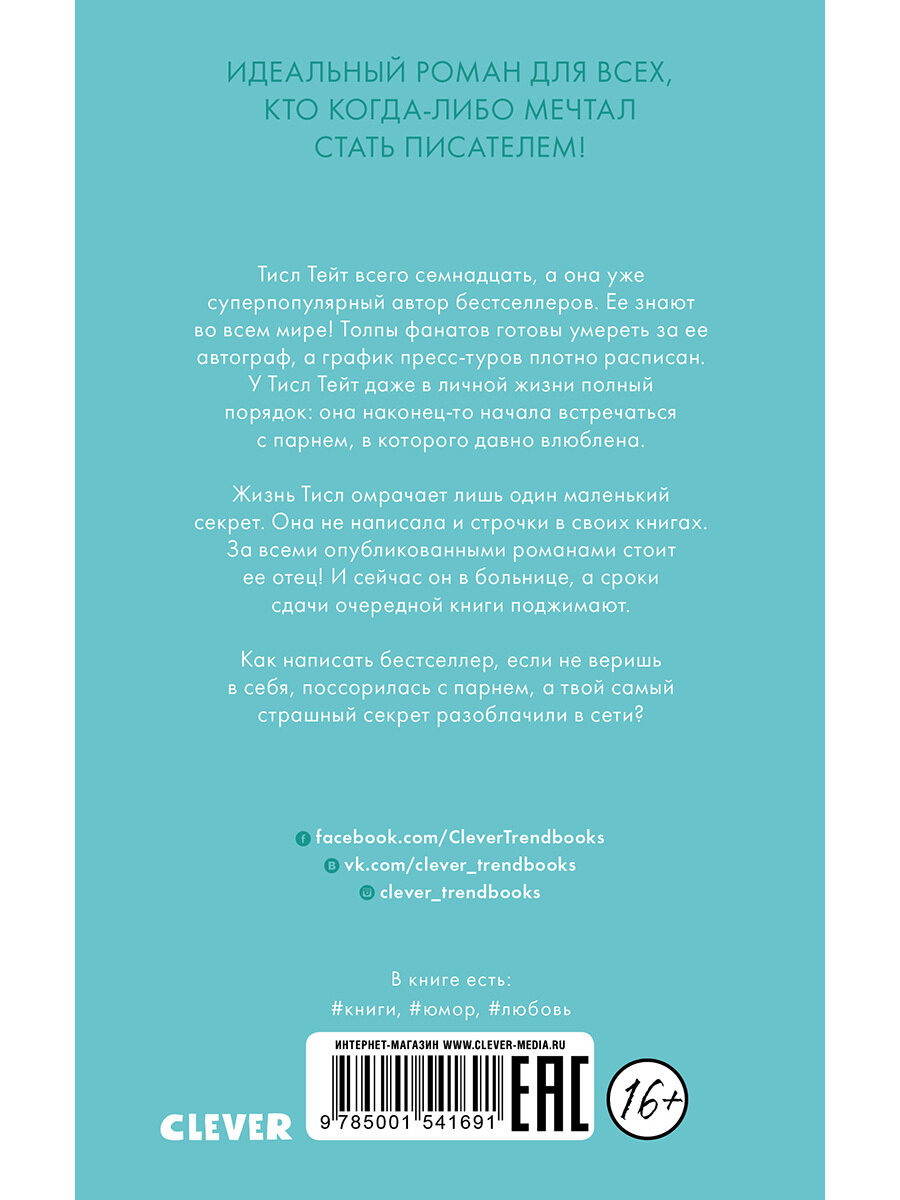 Тисл Тейт всего семнадцать, а она уже суперизвестный автор бестселлеров. Ее знают во всем мире! Толпы фанатов готовы умереть за ее автограф, а график пресс-туров плотно расписан. У Тисл Тейт даже в личной жизни полный порядок она наконец-то начала встречаться с парнем, в которого влюблена. Жизнь Тисл омрачает лишь один маленький секрет. Она не написала и строчки в своих книгах. За всеми опубликованными романами стоит ее отец! И сейчас он в больнице, а сроки сдачи очередной книги поджимают. Как написать бестселлер, если не веришь в себя, поссорилась с парнем, а твой самый страшный секрет разоблачили в сети?