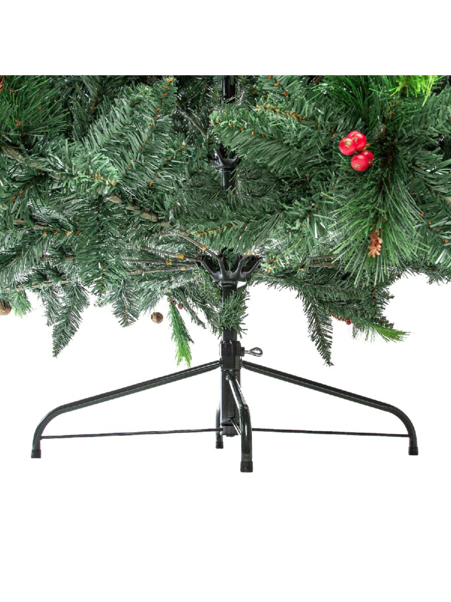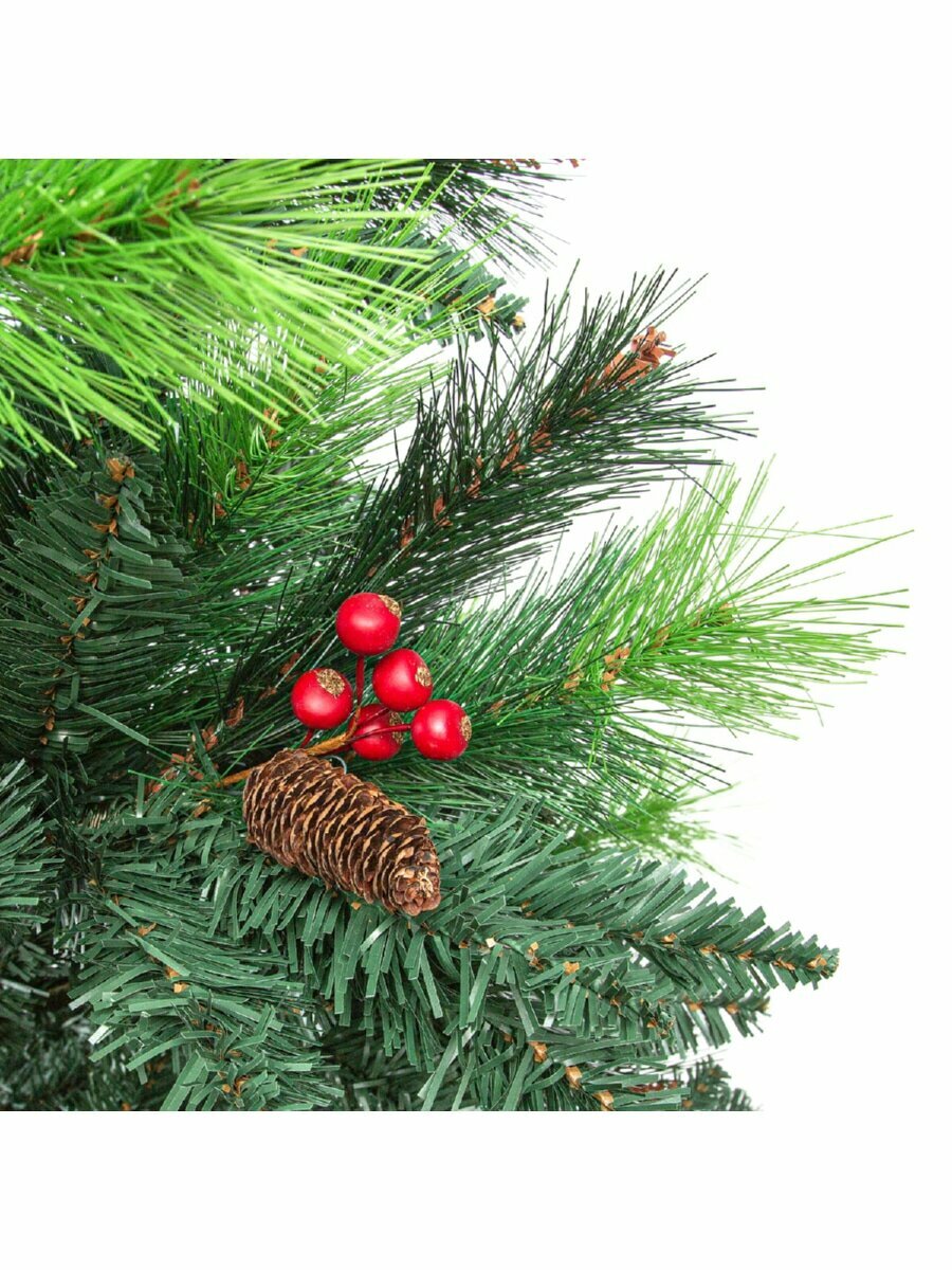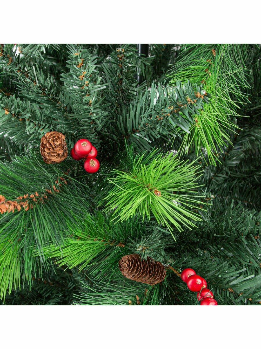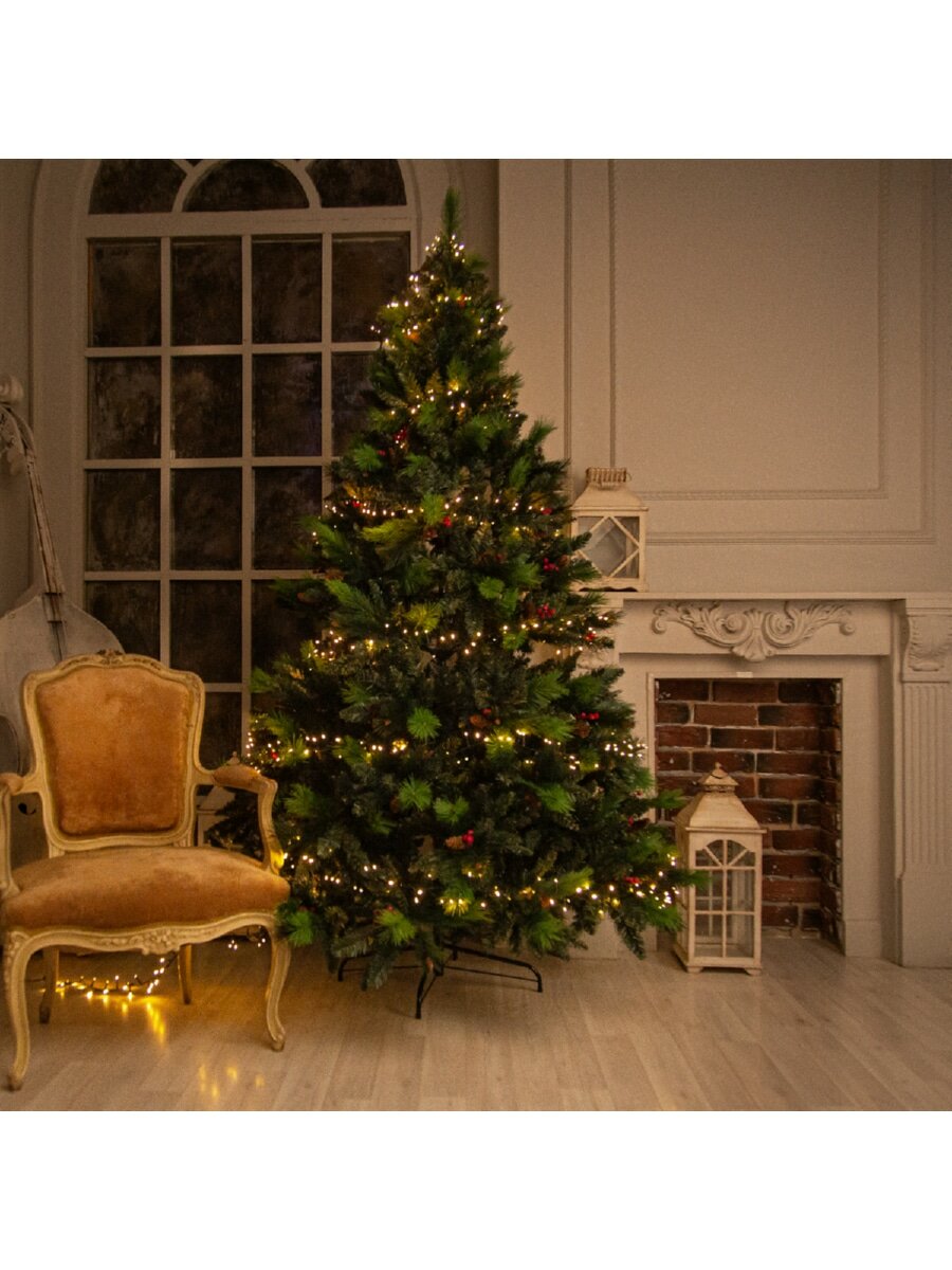 Ель искусственная высотой 210 см с темно-зеленой хвоей из лески и ПВХ с декором из шишек и красных ягод, креплением веток на крючках и 4-опорной складной подставкой в комплектеЕль новогодняя искусственная Phoenix Hinged 210 см от известного голландского производителя Royal Christmas очень популярна благодаря поразительной схожести с настоящей живой ёлкой и наличию красивого декора.Красивые густые ветки елей серии Phoenix Hinged выглядят привлекательно благодаря длинной хвое из микса материалов: жесткой лески РР и мягкого поливинилхлорида. После транспортировки примятая упругая хвоя мгновенно распрямляется.Закрепленные на ветках декоративные шишки и красные ягоды придают дереву особую изящность и создают в помещении, где оно установлено, праздничную новогоднюю атмосферу. Такую ёлку можно даже не украшать дополнительно, достаточно повесить на ее ветви гирлянду.Эта ёлка великолепно впишется в интерьер помещения любого назначения:школьного класса;бутика;официального учреждения;театральной гримерки;офиса;квартиры;гостиницы;хостела и т. п.Деревья этой серии до степени смешения схожи с живыми, настолько натуралистичны хвоя и шишки. Единственное принципиальное отличие — отсутствие характерного запаха хвои.Каркас ветвей выполнен из металла, что придет им прочность при сохранении естественной гибкости. А четырёхопорная подставка надежно фиксирует ствол и делает всю конструкцию устойчивой.Европейское качество изделия подтверждено сертификатами безопасности BSCI и DEKRA. Противопожарная безопасность соответствует международному стандарту NEN EN 71-2.Высокий уровень требований к производству голландской компании с мировым именем Royal Christmas гарантирует срок службы такого изделия не менее 20 лет. Поэтому ель новогодняя искусственная Phoenix Hinged 210 см не только решит проблему поиска главного атрибута праздника на многие годы, но и поможет сохранить жизнь более чем двадцати живым елям.Ель Phoenix Hinged высотой 210 см обладает следующими характеристиками:устойчивая раскладная 4-опорная подставка из металла;количество веток 1193 шт;диаметр нижнего яруса 152 см;отсутствие неприятного запаха;прочный металлический каркас ствола и веток.Сборка ёлки требует минимальных навыков: ветки удобно крепятся к стволу на крючках.В собранном виде дерево компактно укладывается для хранения в короб размерами всего 107 х 73 х 46 см. Вес брутто составляет 16.1 кг.