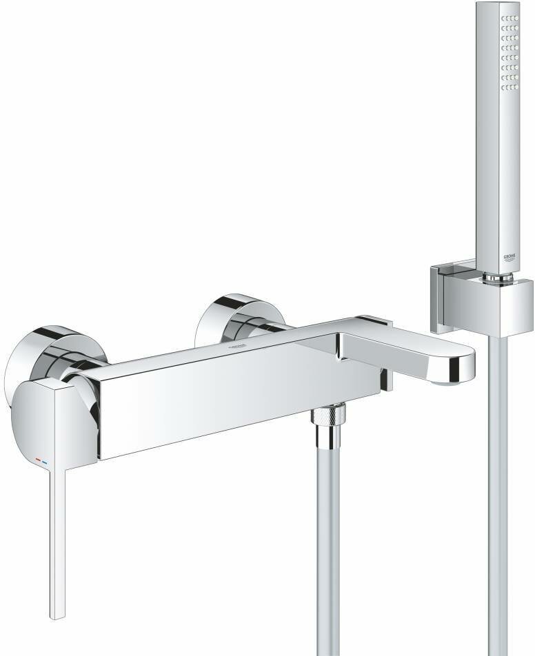 Смеситель однорычажный для ванны, DN 15, хром. Настенный монтаж, металлический рычаг, GROHE SilkMove керамический картридж 35 мм с ограничителем температуры, GROHE StarLight хромированная поверхность, автоматический переключатель: ванна/душ, аэратор, отвод для душа 1/2, встроенный обратный клапан, скрытые S-образные эксцентрики, с защитой от обратного потока, с душевым набором, включает в себя: ручной душ Euphoria Cube Stick (27 698 000), настенный держатель (27 693 000), душевой шланг Silverflex 1.500 мм (28 364). Минимальное давление 1,0 бар.