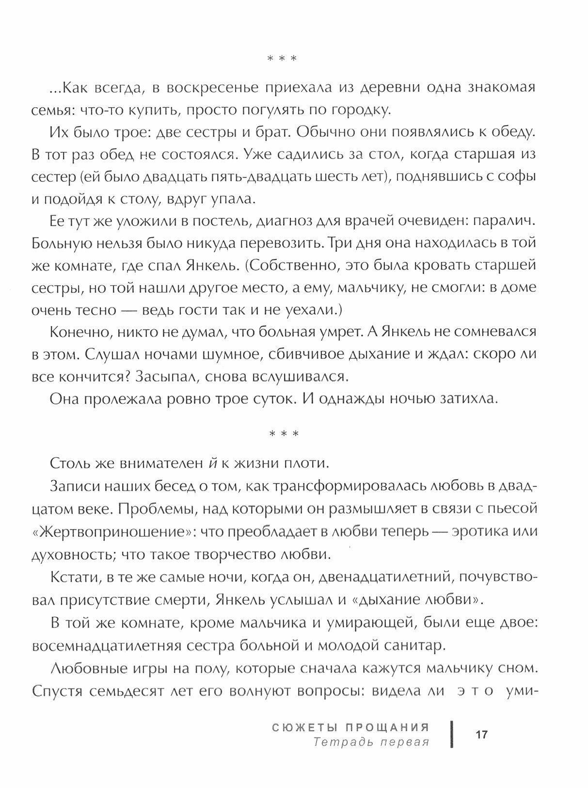 Книга тронула самые глубокие струны души. Автор книги Цейтлин Евсей Львович — эссеист, прозаик, культуролог, литературовед, критик, редактор, который в течение 5 лет встречался с главным героем книги, записывая его воспоминания и монологи о прожитой жизни, которые воплотились в книгу. Можно читать с начала или конца - любой отрывок затронет душу. Предельная откровенность главного героя и самого автора. Это одна из тех книг, к которым возвращаешься мыслью в самые неожиданные моменты собственной жизни.
