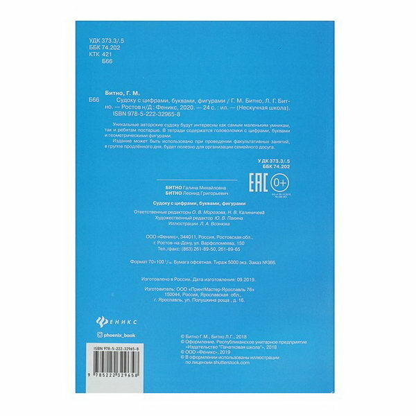 Судоку с цифрами буквами фигурами (Леонид Григорьевич Битно, Галина Михайловна Бинто); Феникс, 2021