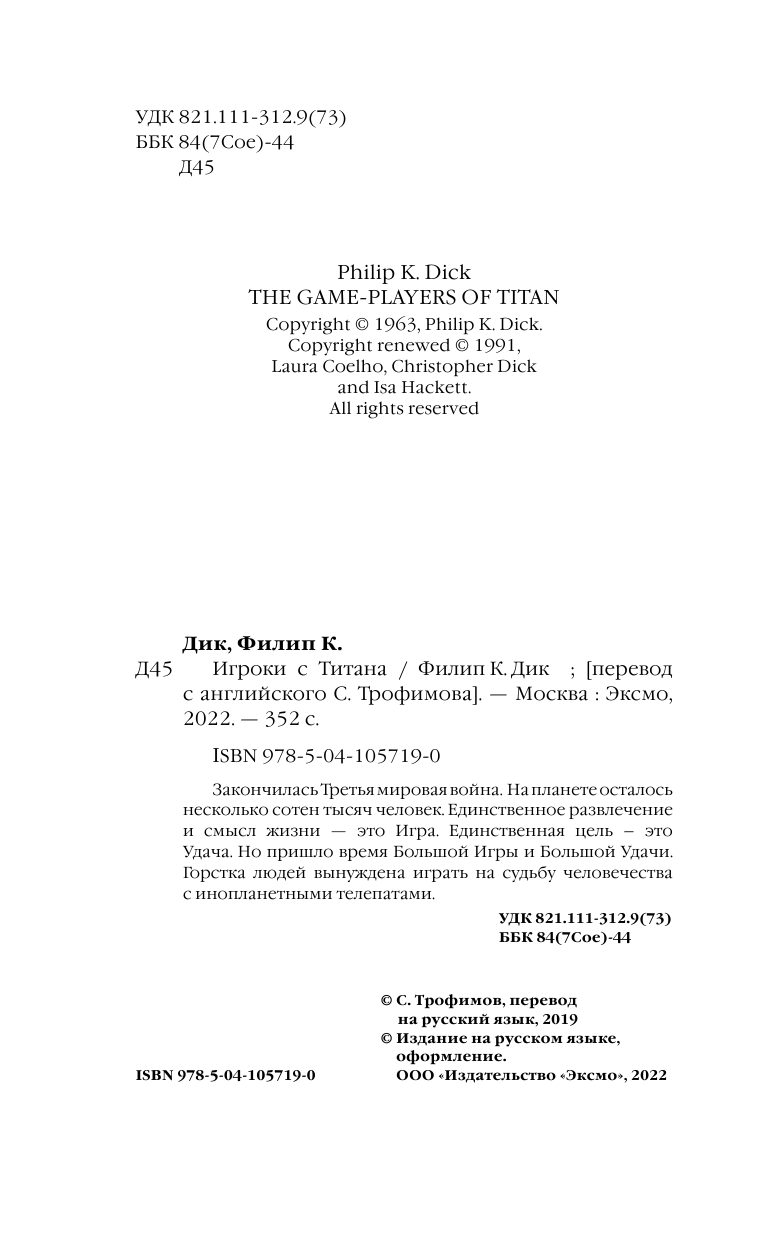 Книга: Игроки с Титана (Дик Филип Киндред); ООО "Издательство "Эксмо", 2019