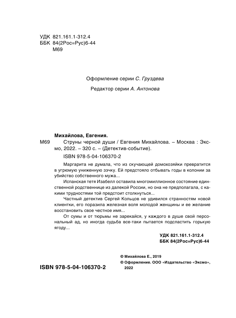 Книга: Струны черной души (Михайлова Евгения); ООО "Издательство "Эксмо", 2019