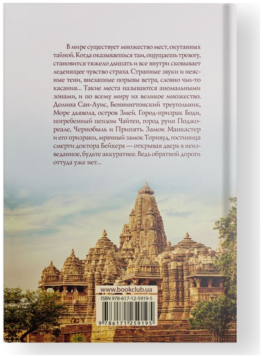 В нашем огромном мире есть много мест, которые окутаны тайнами. Когда люди оказываются там, они ощущают тревожность, нехватку кислорода и сковывающий страх. Необъяснимые звуки, странные тени, внезапный ветер – все это вызывает цепенящий ужас. Эти места называют аномальными зонами, которых в мире насчитывается не один десяток. В Долине Сан-Луис часто появляются НЛО, в Беннингтонском треугольнике таинственным образом исчезают люди, а в Море дьявола пропадают корабли. Остров Змей, калифорнийский город-призрак Боди, чилийский городок Чайтен, погребенный вулканом, Чернобыль, гостиница смерти доктора Бейкера – открывая двери в неизведанное, будьте аккуратнее, потому что обратной дороги оттуда уже не будет…
