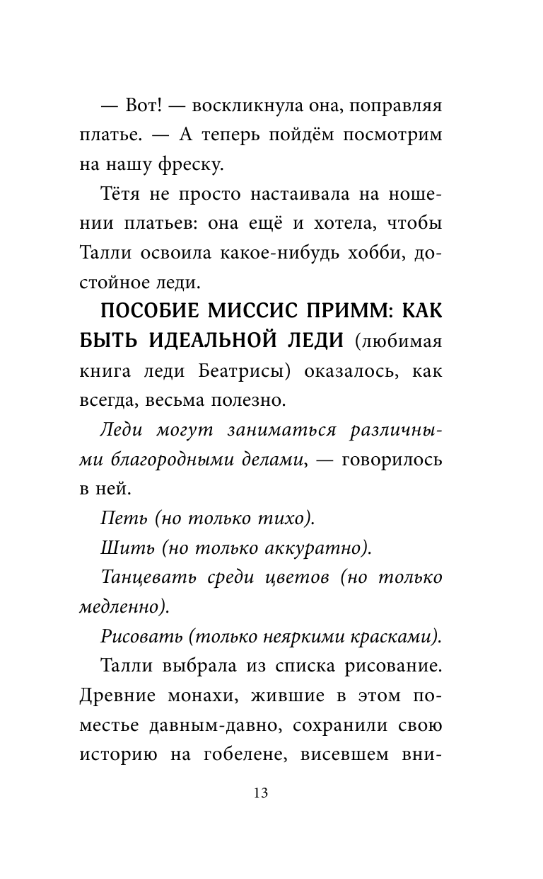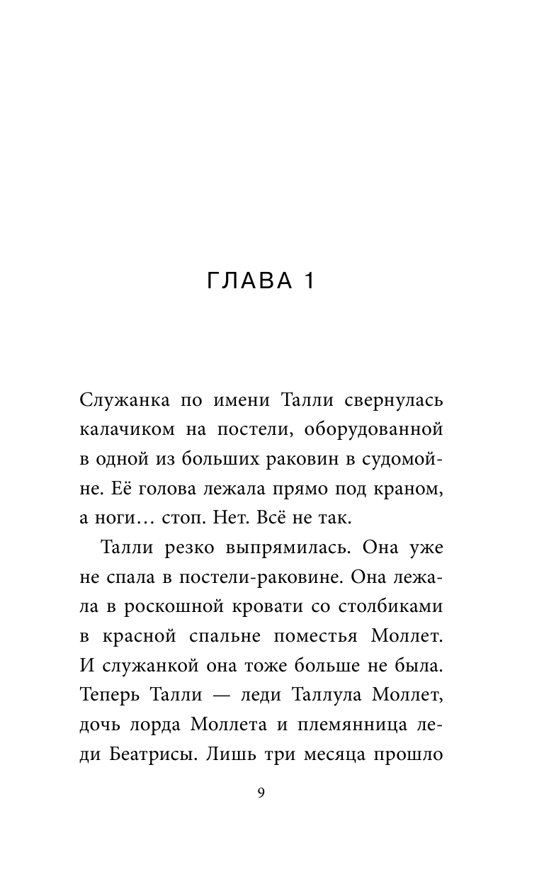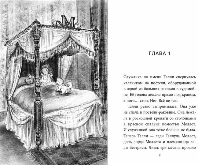 10-летняя Талли — прислуга в красивом поместье Моллет. Она целыми днями моет, полирует и начищает до блеска огромный дом, а пока никто не видит — учится читать! У Талли есть верный друг — белка по имени Хвостик. Вместе им живётся веселее, и они распутывают странности, происходящие в поместье!