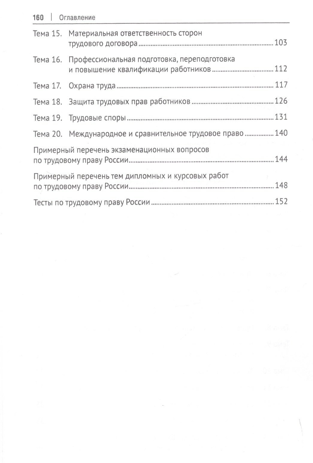 Учебно-методическое пособие предназначено для студентов, обучающихся по направлению подготовки 40.03.01 "Юриспруденция", изучающих курс "Трудовое право России". В нем нашли отражение вопросы нормативно-правового регулирования всех институтов трудового права, тенденции его развития, международно-правовое регулирование труда, вопросы соотношения трудового права с другими смежными отраслями права, в частности с правом социального обеспечения, гражданским правом. К каждой теме дан список специальной литературы, перечень основных нормативно-правовых актов.