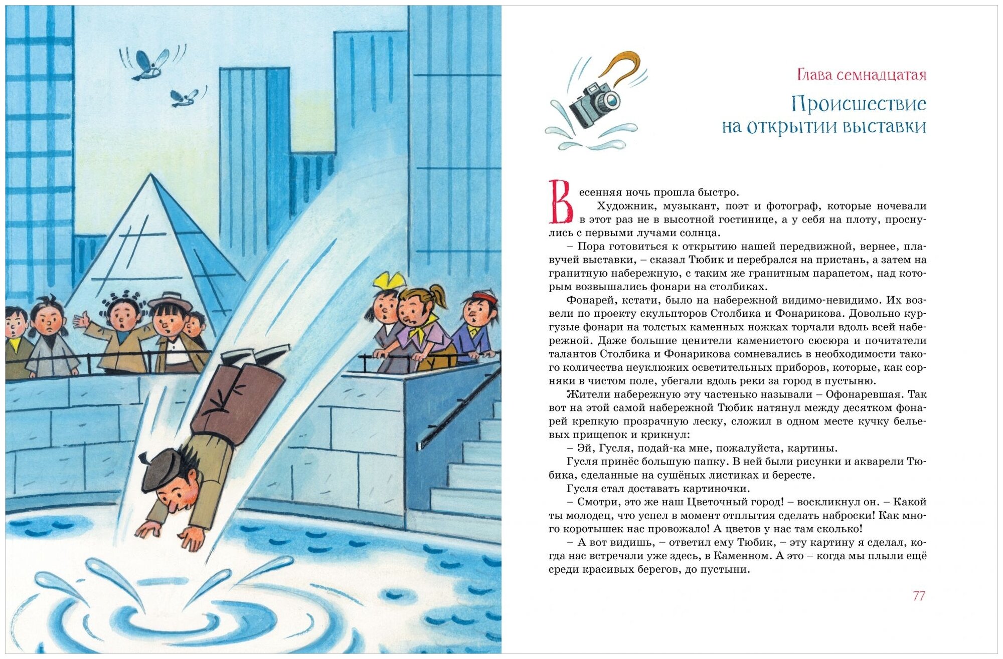 Для меня оказалась неизвестная история про Незнайку, и, конечно, сразу ее заказала. Шрифт в книге удобный, иллюстрации приятные, похожи на стиль Валька. Формат книги большой, сама книга не тяжелая, держать удобно. Текст изложен без сокращений, иллюстраций много, но есть развороты страниц без иллюстраций. Еще важно отметить, что цвета в иллюстрациях используются не очень яркие, глаза не раздражает.