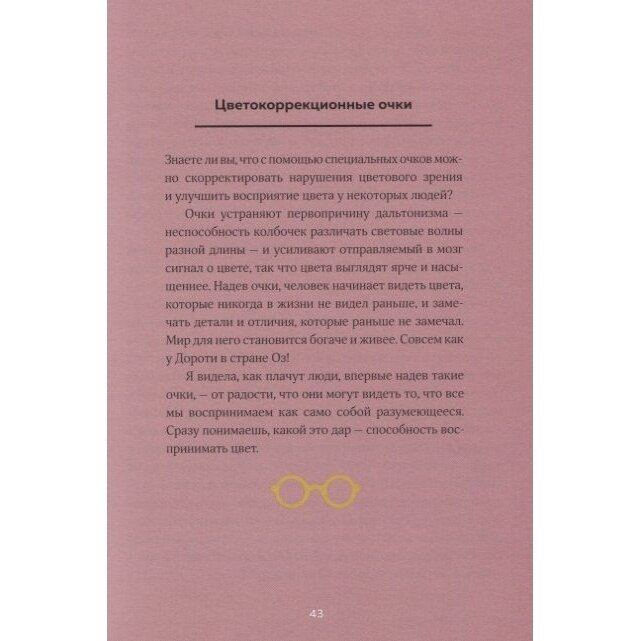 Очень познавательно. Читаю с удовольствием. Открыла для себя много нового и неожиданного. Приятная манера изложения, есть над чем подумать. Некоторые мысли раньше даже на ум не приходили, а тут раз и есть пища для.размышления. Вот уж не думала что мир цвета столь многослойный богатый и удивительный… Полезное чтиво как для людей занимающихся дизайном, так и не занимающихся ) не говоря о том, что само по себе издание очень приятное, твердый переплет, плотная бумага, яркие иллюстрации, ляссе. Покупкой довольна, не пожалела ни разу ни денег ни времени. Благодарю.