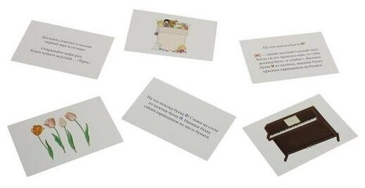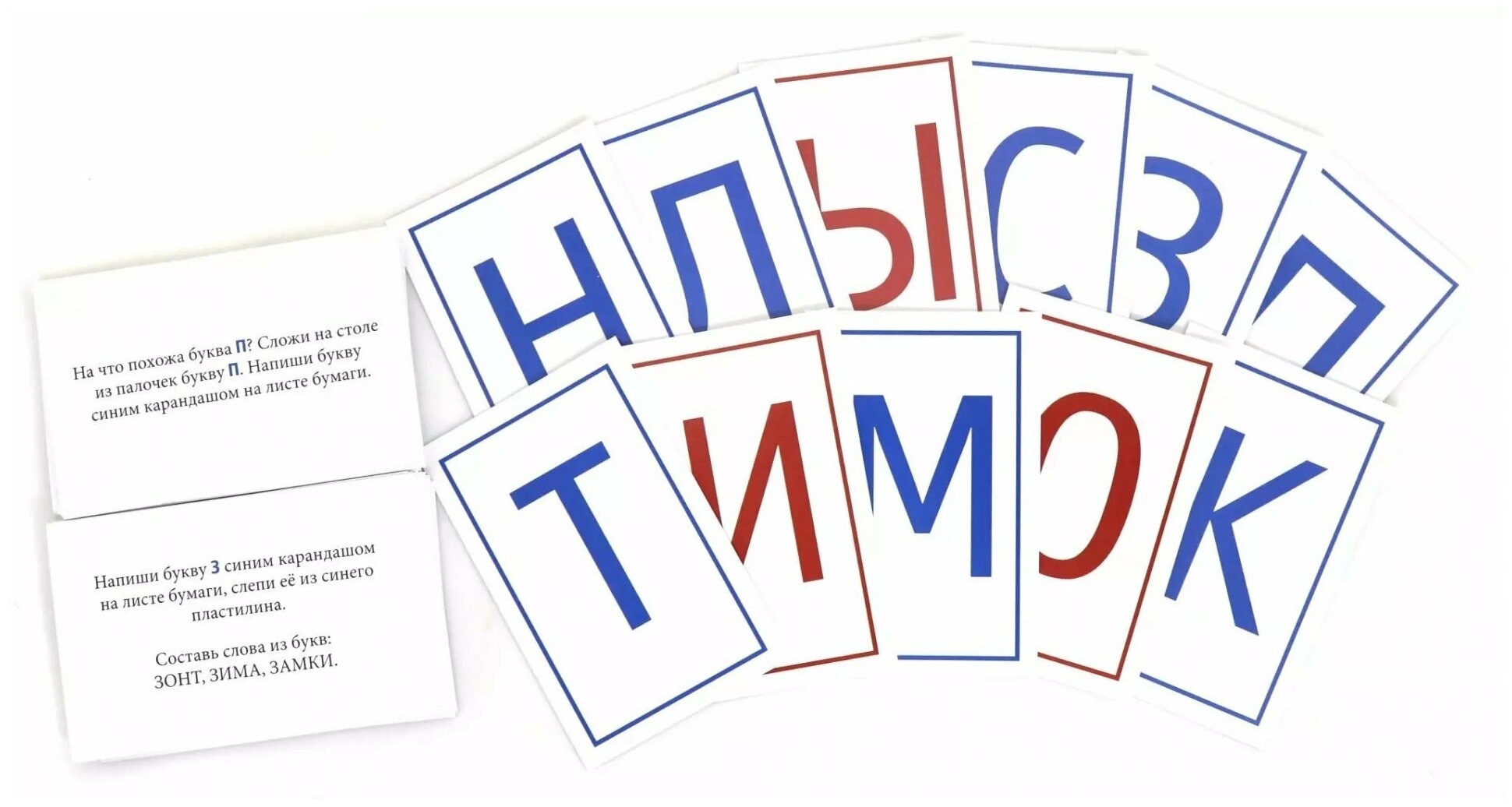 Классные карточки, тут не только просто буквы на карточках с обратной стороны стихотворения, но и есть карточки с изображениями (хорошие кстати, иногда такое встречаешь в других пособиях!, а здесь - все нормальные понятные), сзади которых задания на каждую букву - например, слепить ее из пластилина, изобразить собой букву, отгадать загадку - вот это особенно понравилось моему ребенку. мы берем карточки с собой в очередь куда-нибудь благо они совсем маленькие и наугад вытягиваем карточку - это и полезно и интересно ребенку и без всяких телефонов с мультиками в очереди :)) ребенок здоров подтянул свои знания букв, ему 4ре года