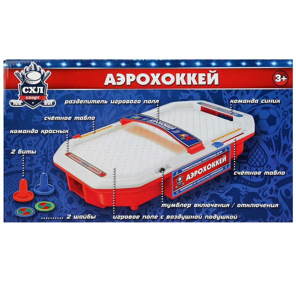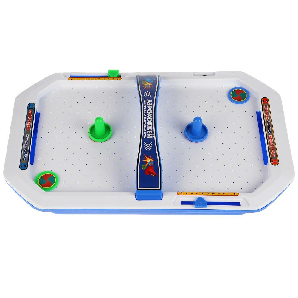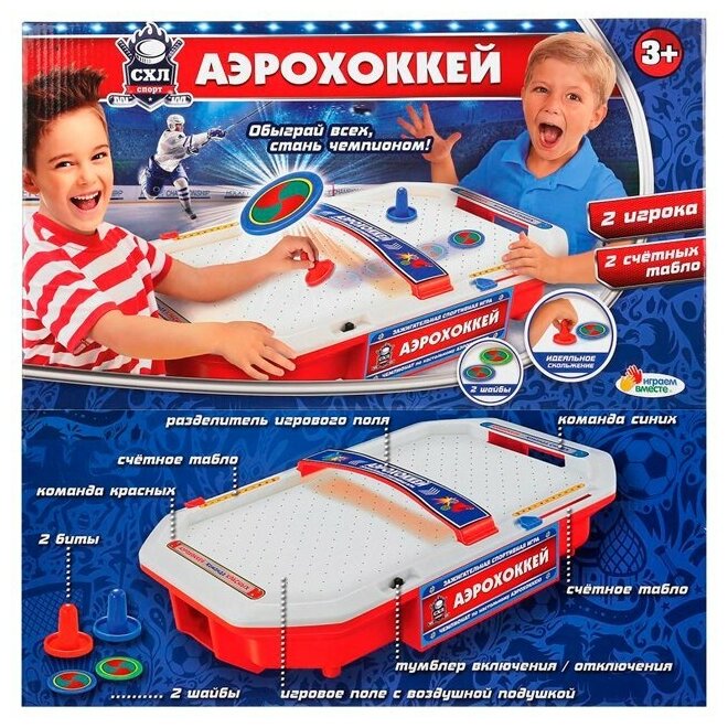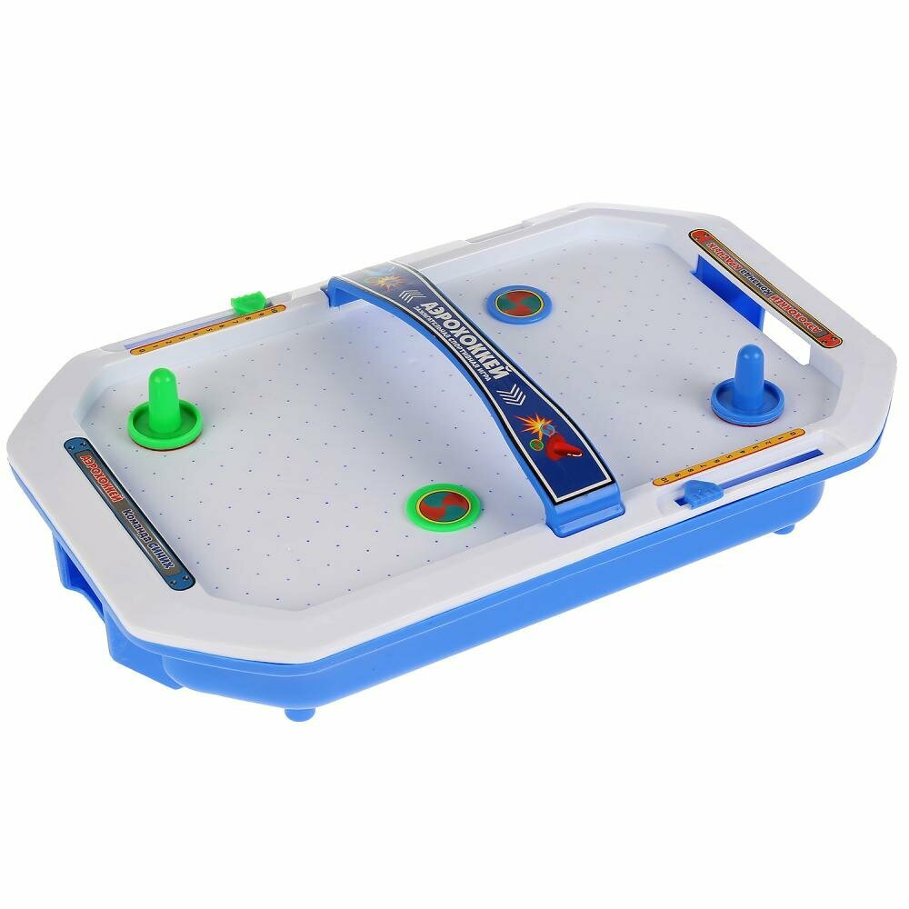 | Комплектация | игровое поле с воздушной подушкой; тумблером включения/выключения; разделителем; 2 счетных табло; 2 шайбы; 2 биты |