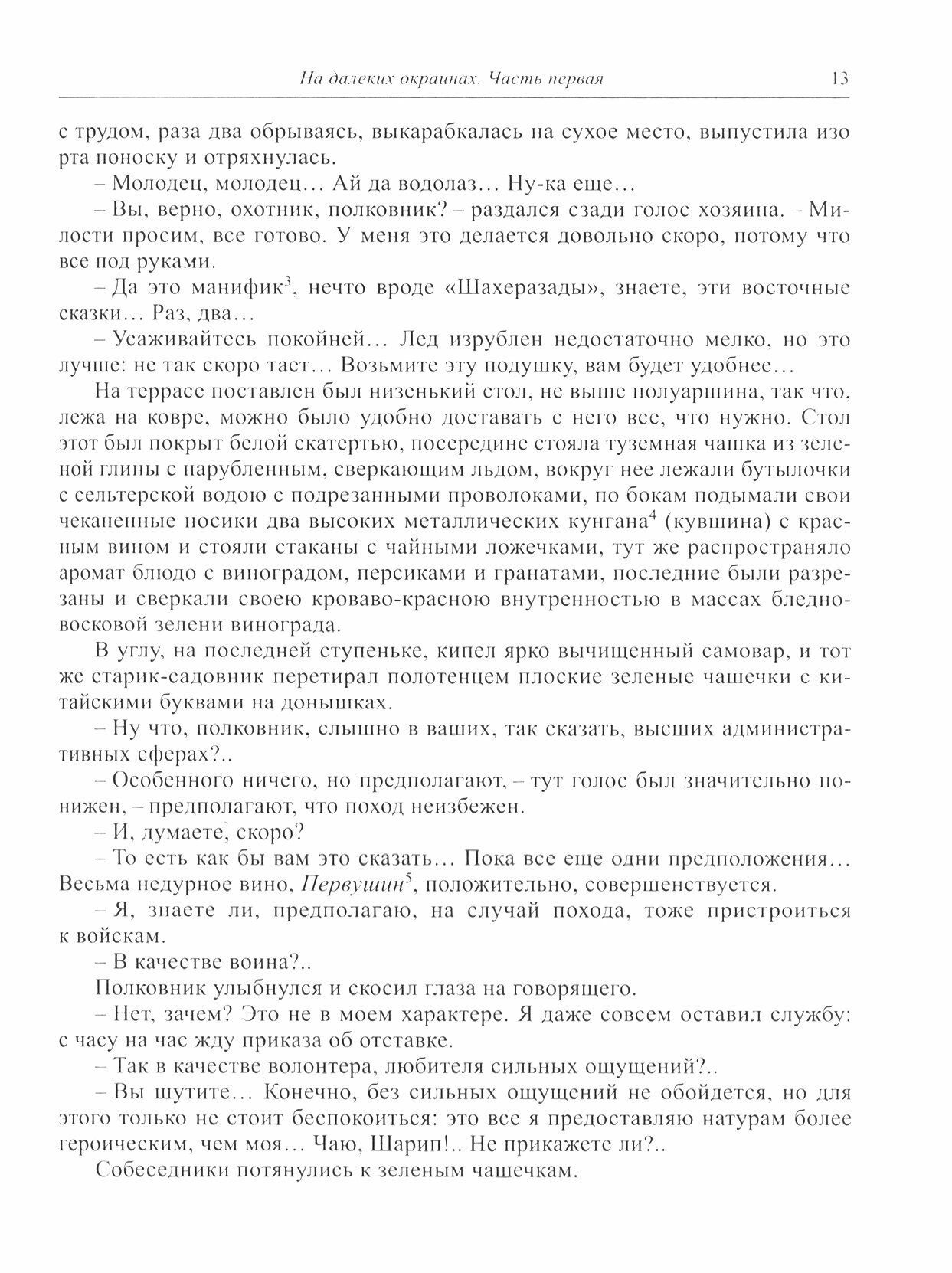 Николай Николаевич Каразин (1842-1908), весьма популярный при жизни, открывал читателю только что завоеванную Среднюю Азию: быт, нравы, культуру ее народов. Представленная романная дилогия - "На далеких окраинах" и "Погоня за наживой" - реалистически возвращает читателя в эпоху XIX в., когда в Азию направились не только подвижники и альтруисты, но и авантюристы, нувориши. Каразин, будучи участником и очевидцем колонизации Средней Азии, одним из первых запечатлел те необычные для европейского глаза артефакты, ментефакты, черты ландшафта, которые стали слагаемыми, или паттернами, туркестанского текста русской культуры. Том снабжен историко-литературными, культурологическими и этнографическими комментариями и иллюстрациями автора.