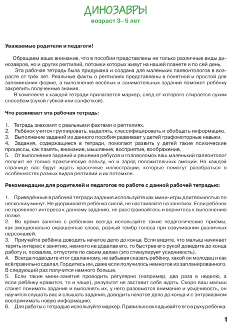 Рабочая тетрадь для детей 3-5 лет Динозавры (Фишер Ю.); Издательский Дом Юлии Фишер, 2019