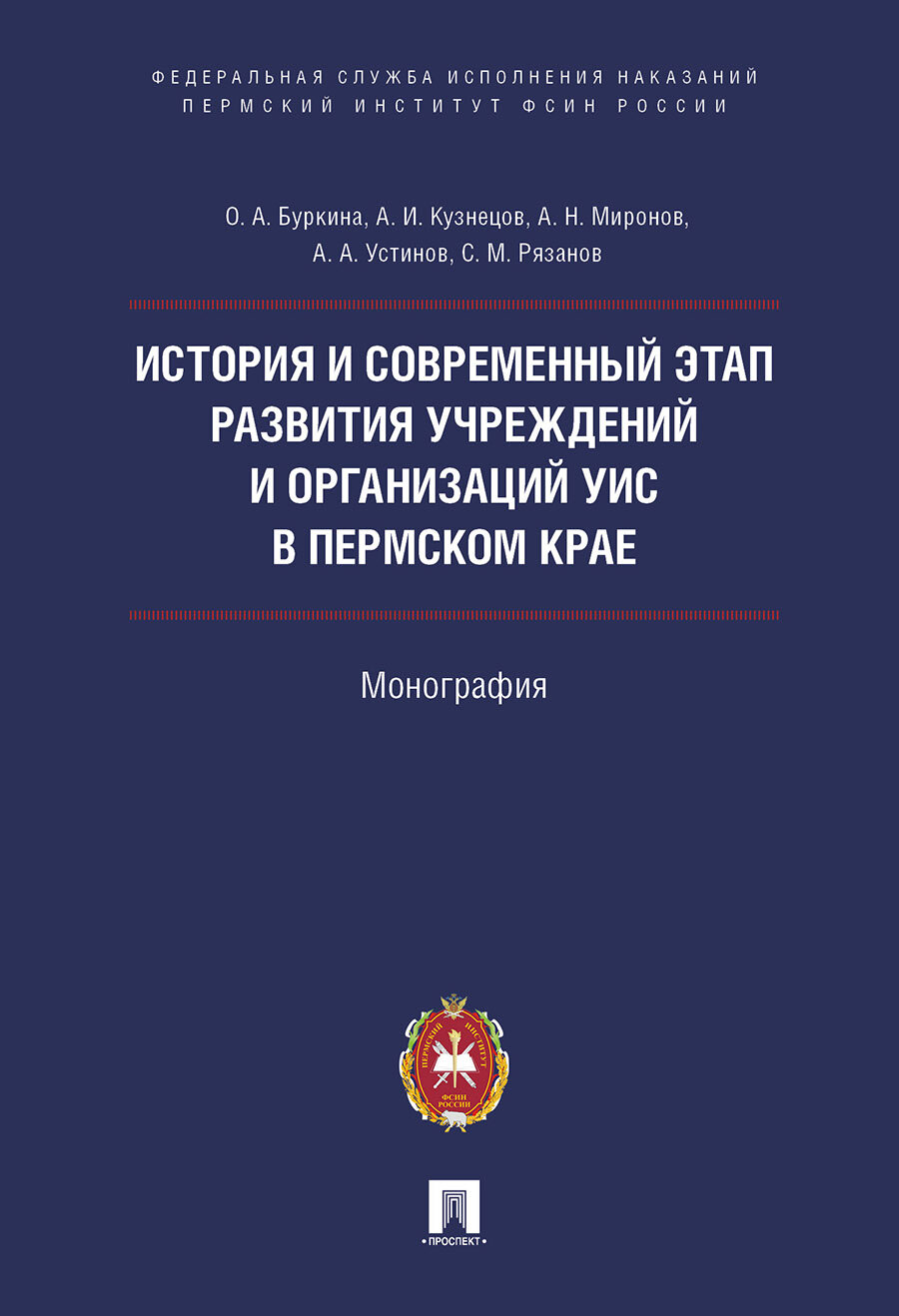 История и современный этап развития учреждений и организаций УИС в Пермском крае.Монография (Буркина Ольга Александровна; Кузнецов Александр Игнатьевич; Рязанов Сергей Михайлович; Устинов Альберт Александрович); Проспект, 2019