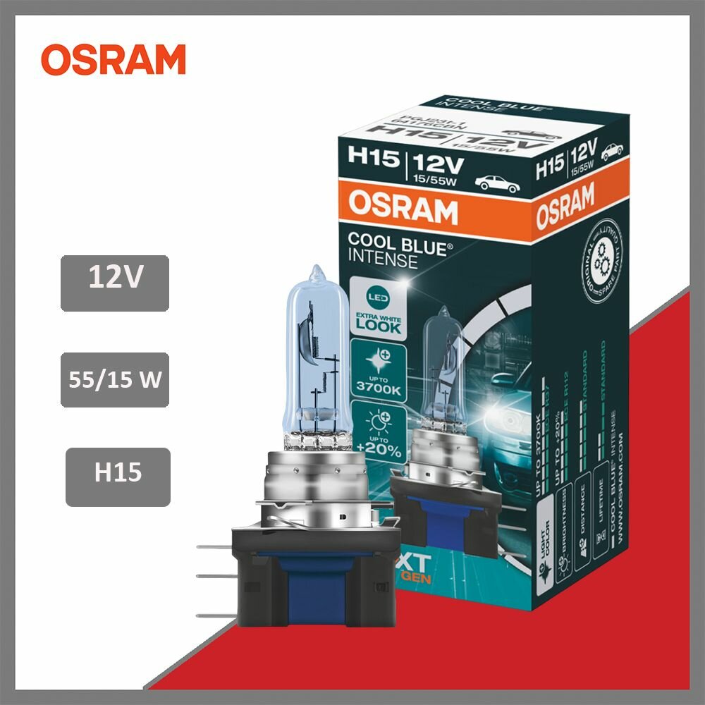 Откройте для себя высокотехнологичные галогенные лампы OSRAM COOL BLUE INTENSE, свет которых производит точно такое же впечатление, как свет стандартных ксеноновых ламп. Яркий нейтрально-белый свет, температура свечения которого достигает 4200K, придаст вашему автомобилю более стильный вид.
