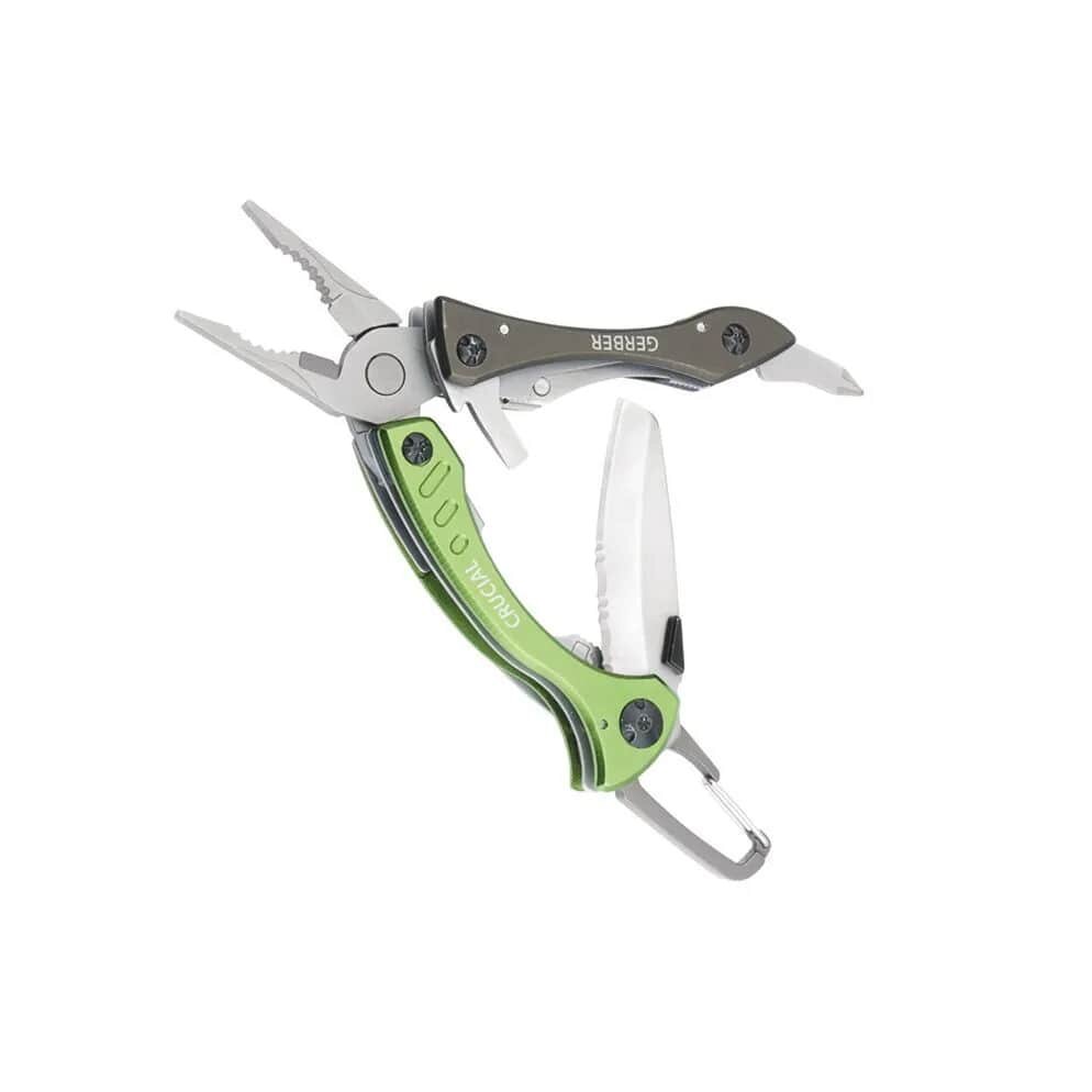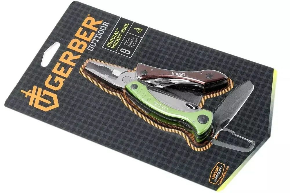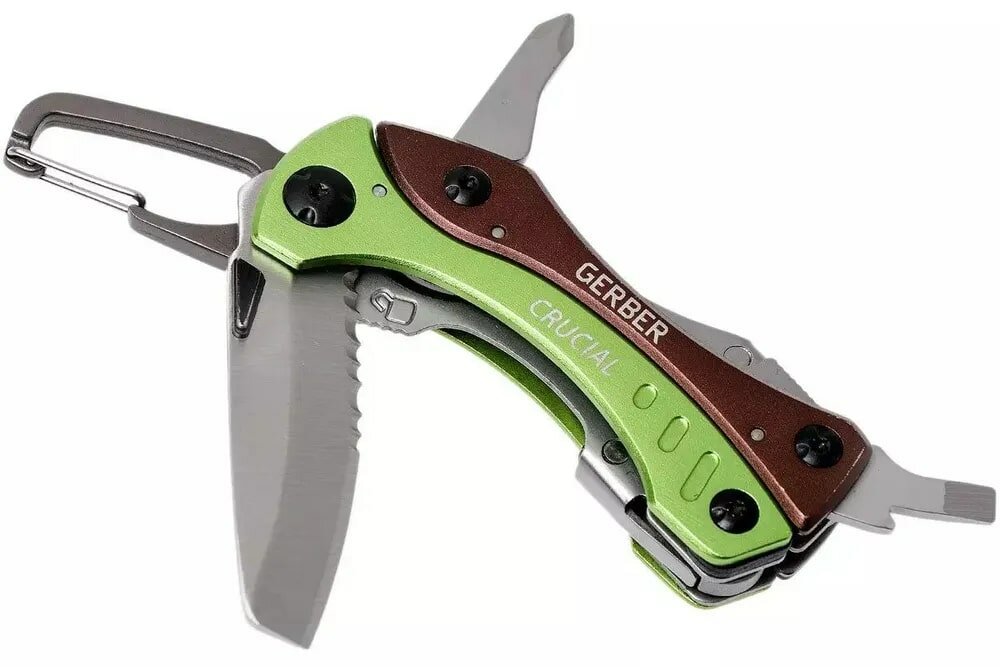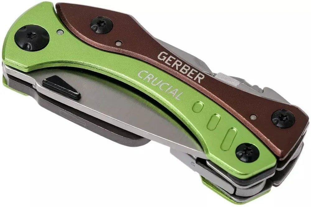 Мультитул Gerber Crucial в сложенном виде напоминает закрытый перочинный нож, правда, с увеличенной раза в два вширь рукояткой. Наличие карабина позволяет закрепить гаджет на экипировке или одежде, что будет преимуществом при выборе данной модели. Длина Gerber Crucial в сложенном виде составляет менее 10 см. Все инструменты мультитула изготовлены из нержавеющей стали. Механизм фиксации лезвия Liner-Lock позволяет не беспокоиться о надежности и дает возможность приготовить клинок к действию одной рукой.