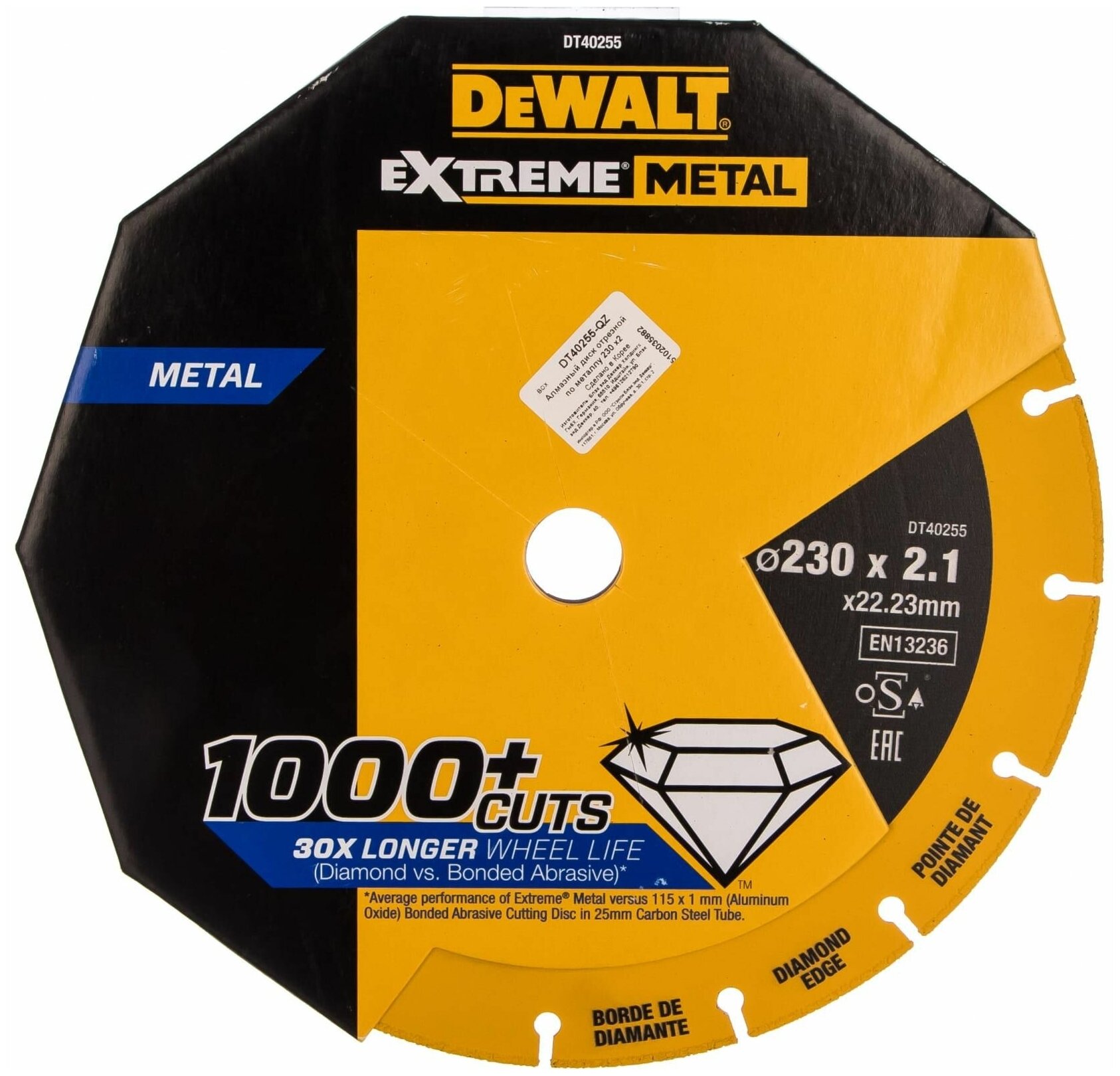 Исключительная долговечность - до 1000 и более резов каждым диском. Срок службы в 30 раз дольше по сравнению с обычными отрезными дисками. Передовая алмазная технология - прочные сегменты с алмазной кромкой предотвращают износ - постоянная глубина реза обеспечивает лучшую управляемость и точность. Безопасность - прочное стальное тело диска значительно снижает риск поломки. Меньше пыли и запаха., Для различных металлов, включая сталь, нержавеющую сталь, чугун, арматуру, листовой металл, алюминий и цветные металлы. Совместим с УШМ и дисковыми отрезными пилами.