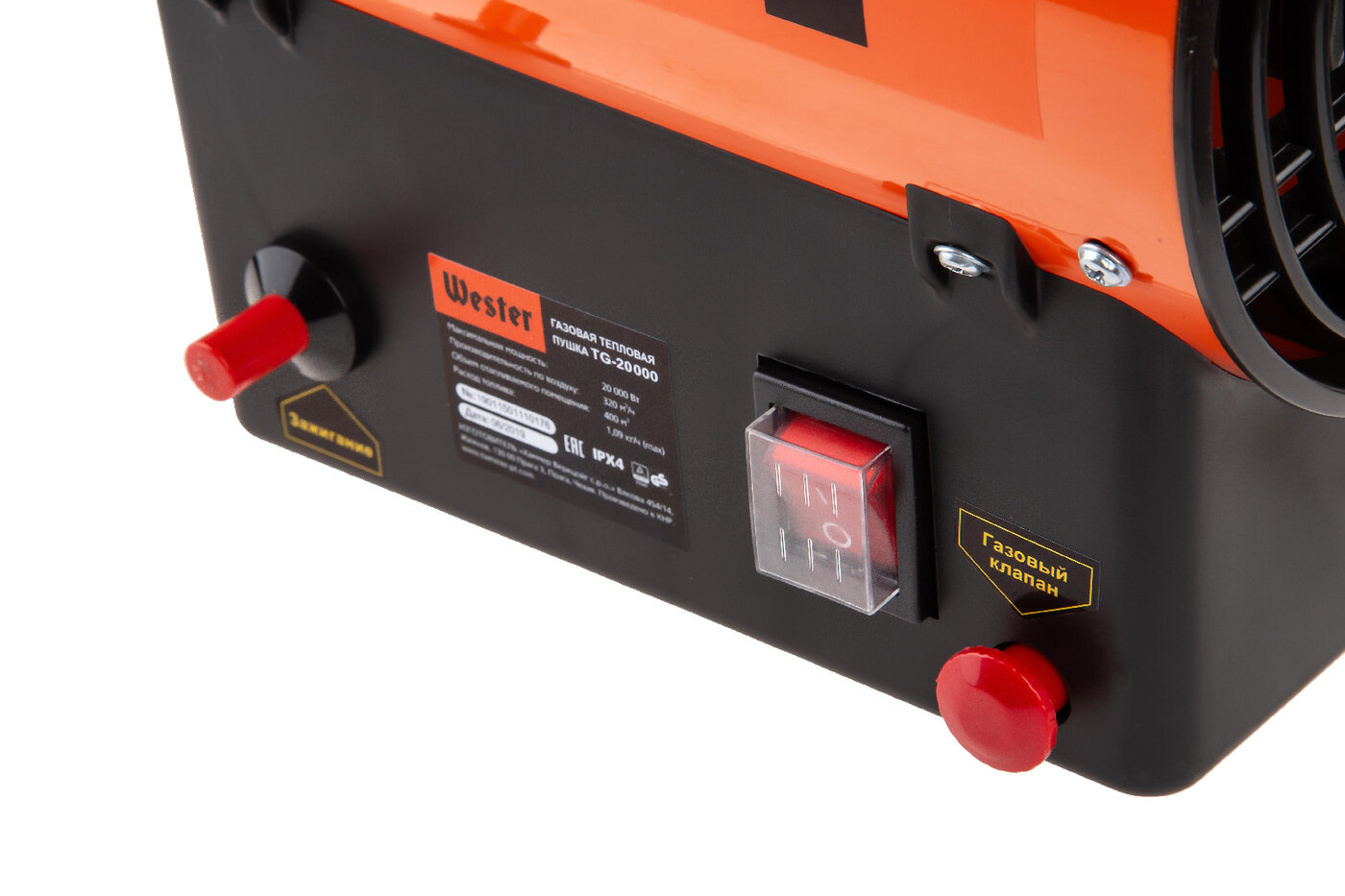 WESTER – газовая тепловая пушка, пушка, предназначена для обогрева строительных помещений, складов, гаражей, мастерских и ангаров. Мощность 20000 Вт. Работает от подключения к газовому баллону. Подходит для просушки, обеспечивает быструю циркуляцию тёплого воздуха.· Производительность: 340 м3/ч· Площадь обогрева: 170 м²· Напряжение: 220 В· Гарантия: 5 летОсобенности модели :Пушка подключается к газовому баллону с помощью шланга, который уже входит в комплект. Не нужно будет ничего докупать.Чтобы включить теплопушку, нажмите включатель питания, а затем - зажмите кнопку подачи газа и пьезоподжига одновременно. Пушку легко и быстро запустить.Аварийное отключение мгновенно сработает при перегреве корпуса. Выключит пушку и защитит её от поломки.Тепловая пушка поддерживает работу в режиме вентиляции холодным воздухом. Пригодится в жаркое время года.Воздухозаборник и выпускное отверстие закрыты сеткой. Она не позволит посторонним предметам попасть внутрь корпуса.Wester — чешский производитель сварочного оборудования, стабилизаторов напряжения, тепловентиляторов и др. Официальный дилер в России – компания «220 Вольт».