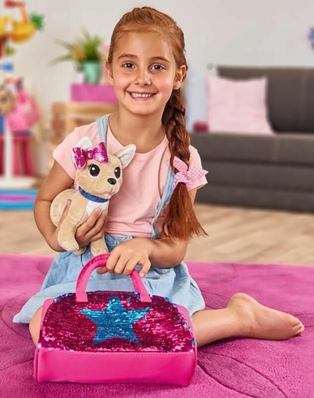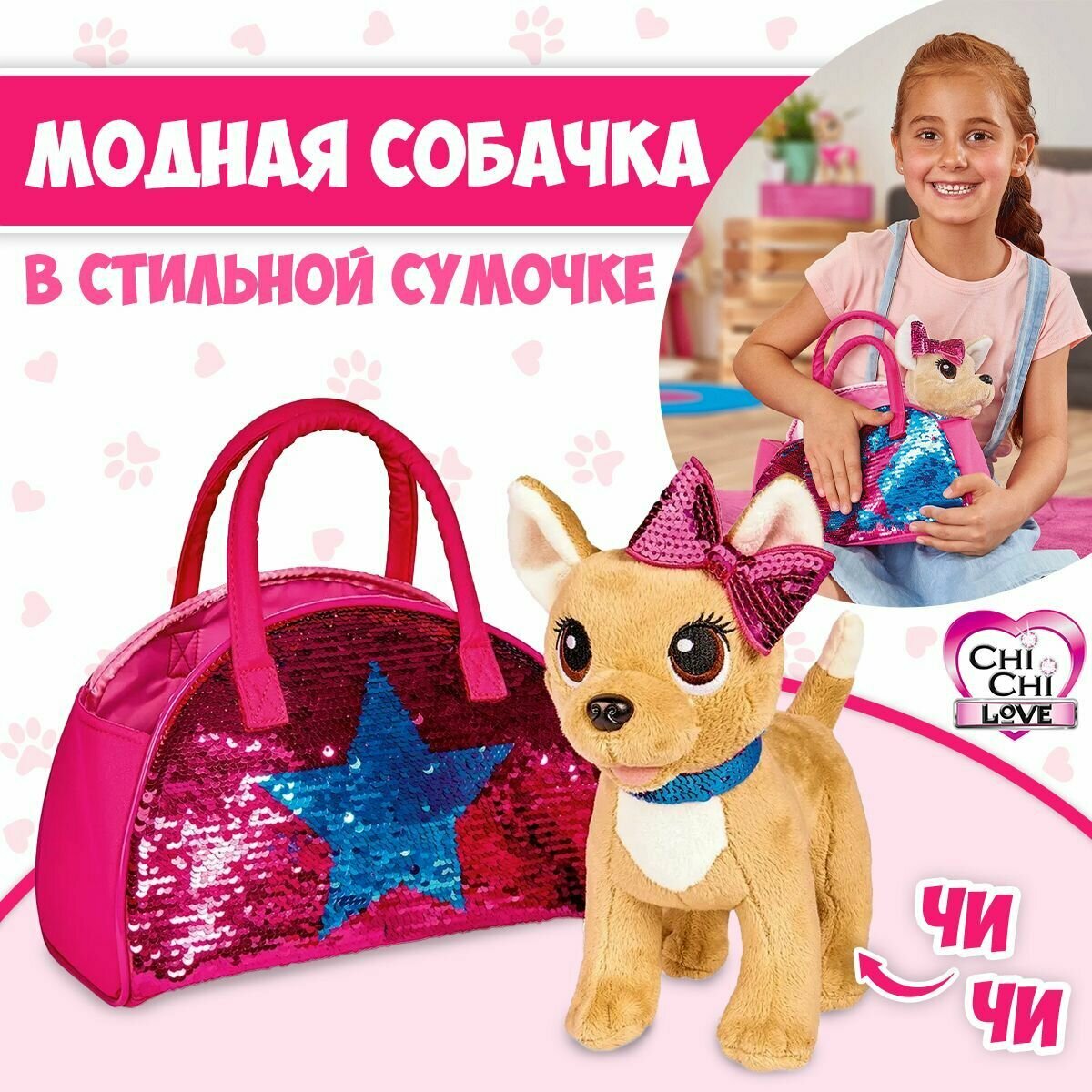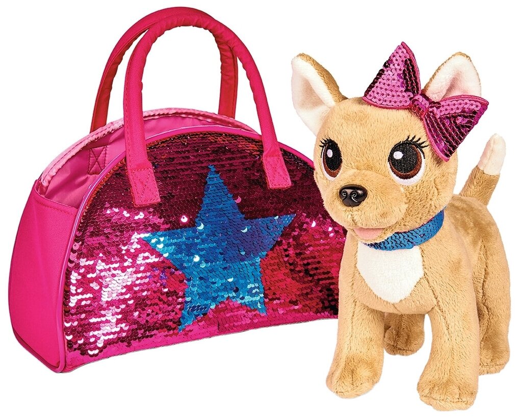Мягкие игрушки Chi-Chi love 5893351 Плюшевая собачка "Блестящая мода", с сумочкой, 20 см (размер: маленькая)