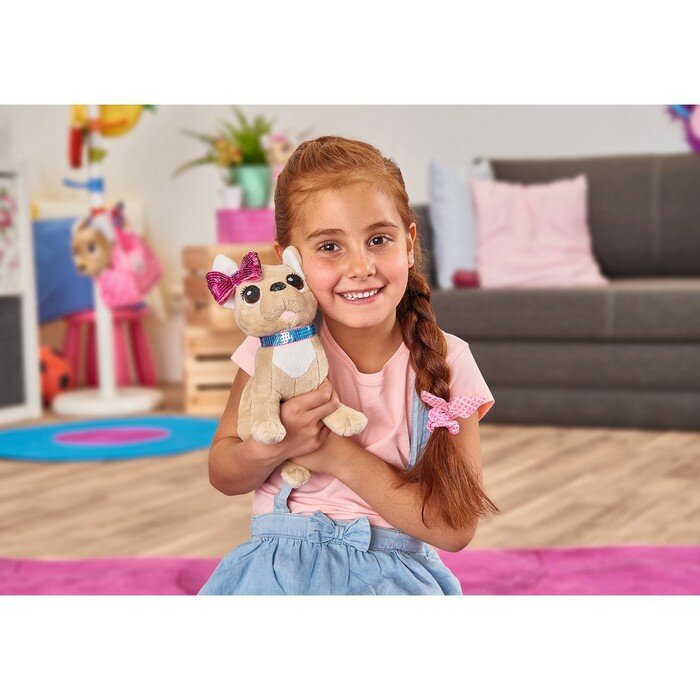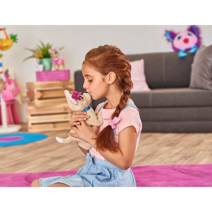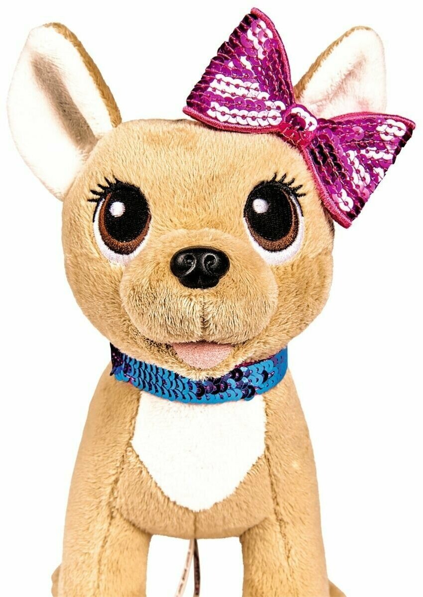 Очаровательная плюшевая собачка Чихуахуа Chi-Chi love с мягкой, похожей на настоящую, светло-коричневой шерсткой, белыми ушками, белой грудкой и белым кончиком хвостика. У игрушки симпатичная мордочка с большими карими глазами и прошитыми ресницами и кожаный носик. Высота игрушки 20 см.