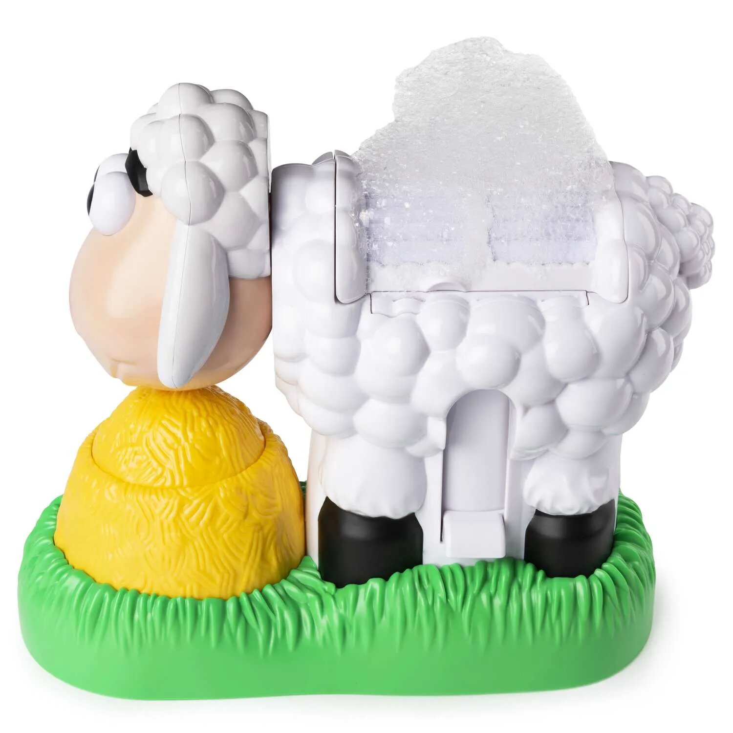 Нанесите мыльный раствор на спину игрушки. По очереди берите фишки и выращивайте шерсть овечки, нажимая на ее голову столько раз, сколько указано на фишке. Шерсть из мыльных пузырей будет расти.