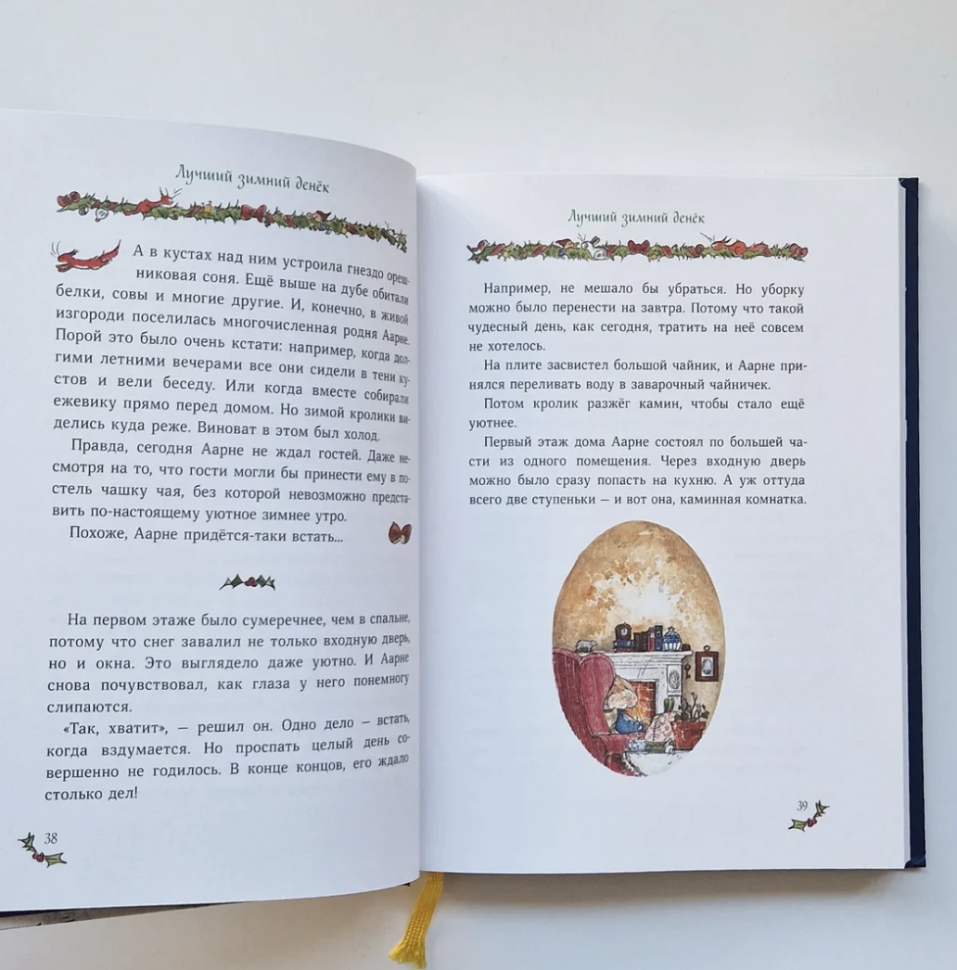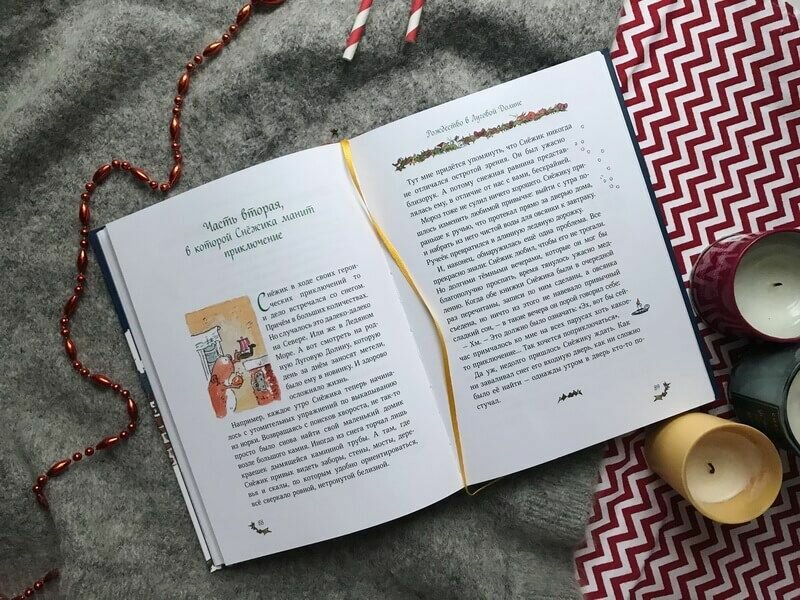 Единственное, что расстроило нас с дочкой, что почти все иллюстрации маленькие и их не очень много. Первая Тильда отличалась большим количеством текста и небольшими иллюстрациями, из-за этого я даже думала, что моей дочке книгу читать рано. А в этой рисунков еще меньше, и они крошечные, как собственно, и большая часть героев книги… Но сказки от этого не становятся менее добрыми, зимними, праздничными и уютными.