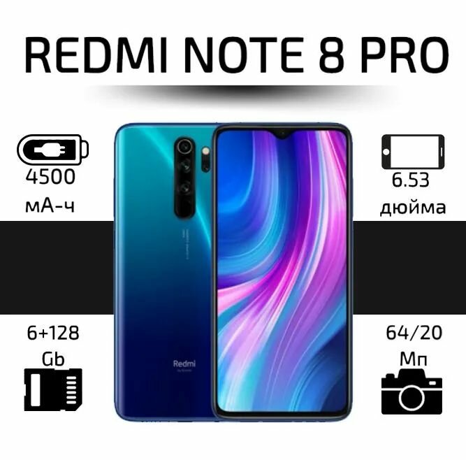 | Комплектация | Redmi Note 8 Pro, адаптер питания, защитный чехол, кабель USB Type-C, скрепка для извлечения SIM-карты, гарантийный талон |