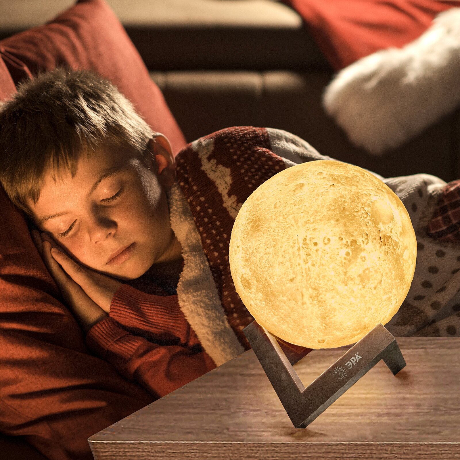 Ночник с необычным дизайном в виде реалистичной луны. Отличный подарок к любому празднику. Подставка из пластика под цвет дерева. ЭРА "Луна" может светить теплым желтым или холодным белым светом переключается прикосновением. Просто возьмите ее в руки - и начнется ночная световая магия! Яркость плавно регулируется - касаемся зоны управления рядом с портом для зарядки и удерживаем, яркость изменяется.