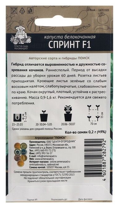 Капуста белокочанная Спринт F1 02 г ПОИСК