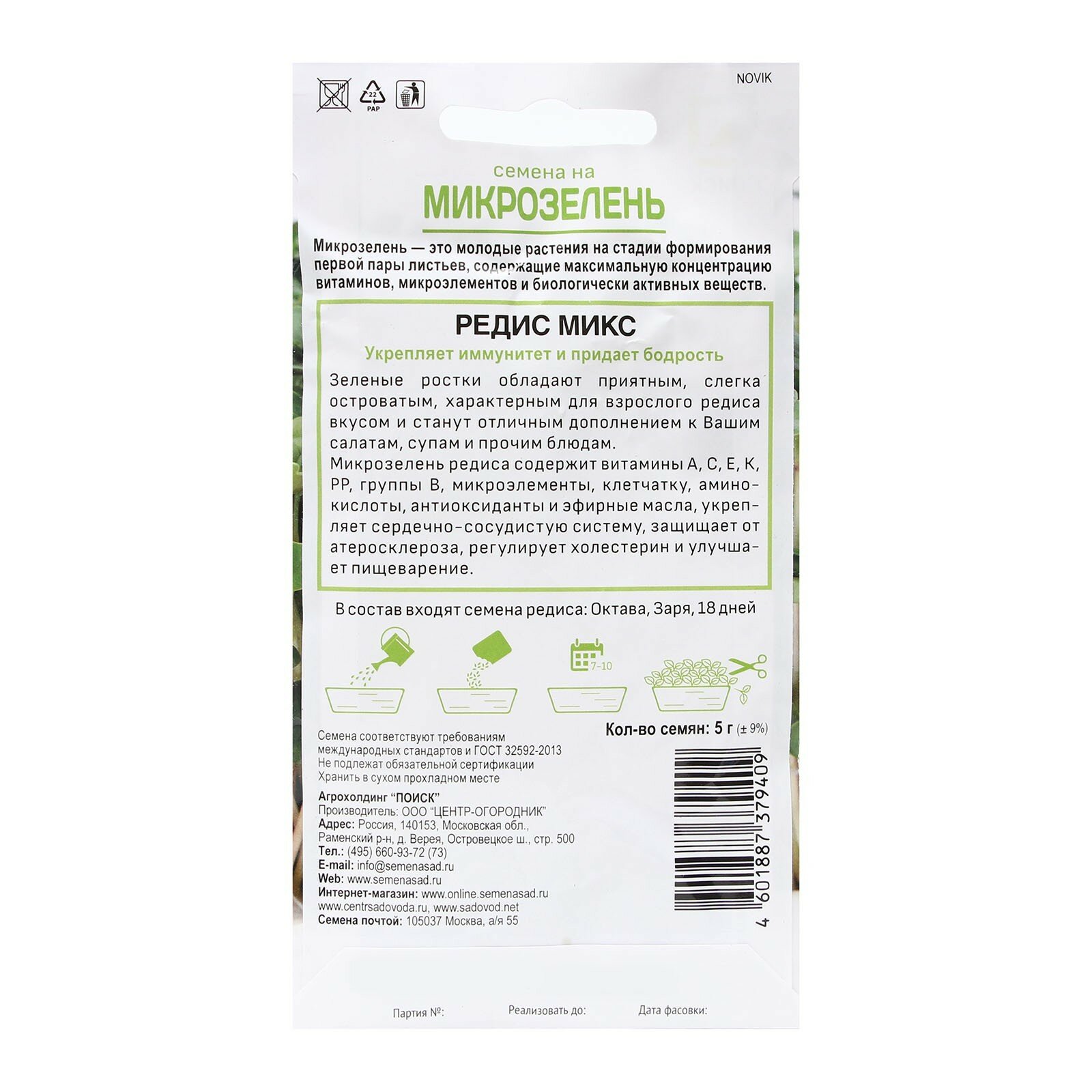 Микрозелень Редис (микс) 5 г ПОИСК