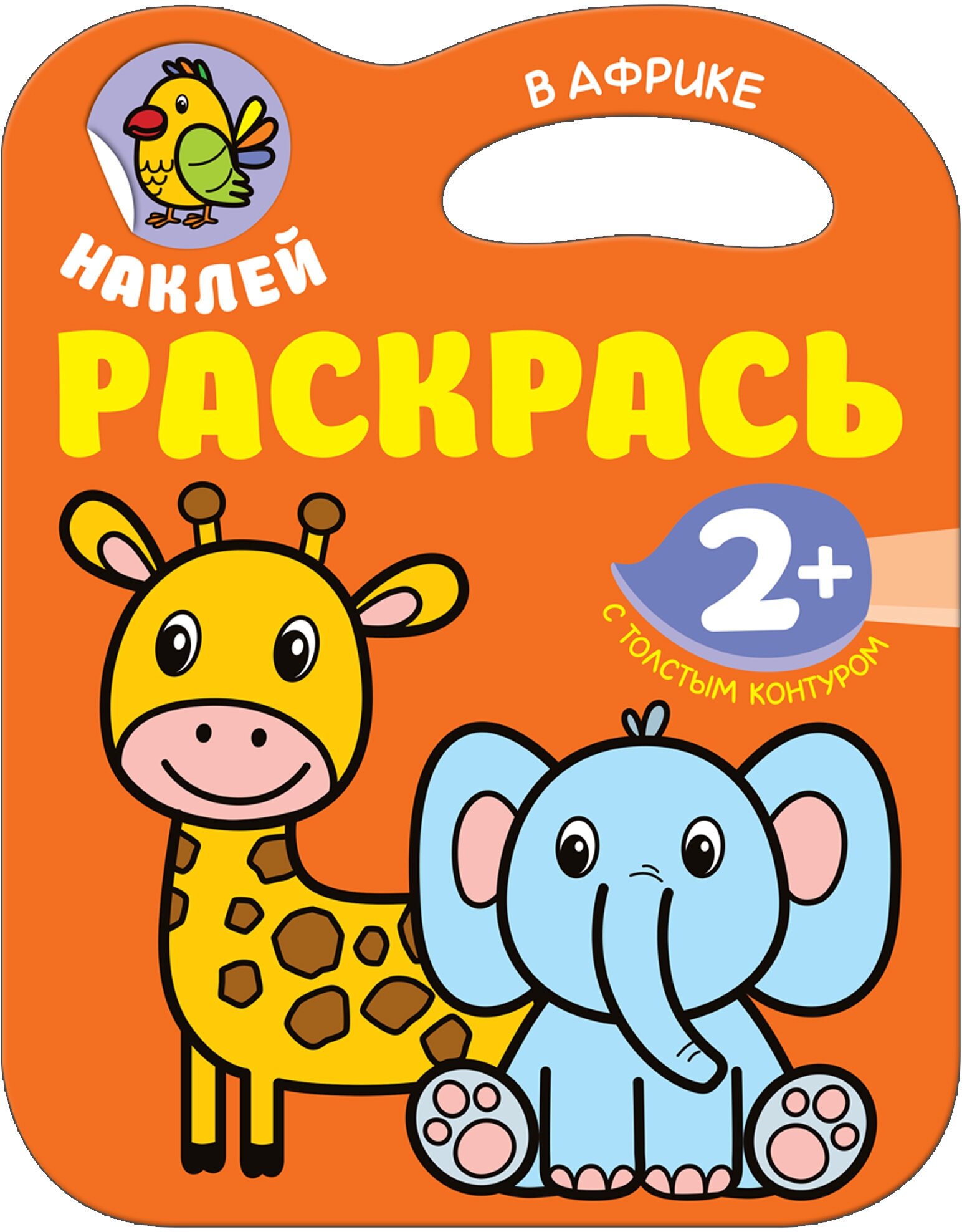 А ваш ребенок любит животных? Тогда он будет в восторге от этой раскраски., Внутри книжки "В Африке" серии "Наклей, раскрась!" маленького художника ждут забавные обитатели Африки, веселые стихи и яркие наклейки, которые подскажут, как правильно раскрасить картинку., Крупные области для раскрашивания, толстые контуры, плотная бумага - именно такими и должны быть первые раскраски малыша., Занятия по книгам серии "Наклей, раскрась!" принесут вашему ребенку не только радость, но и пользу. Они способствуют развитию творческих способностей, мелкой моторики, а также расширению представлений об окружающем мире.