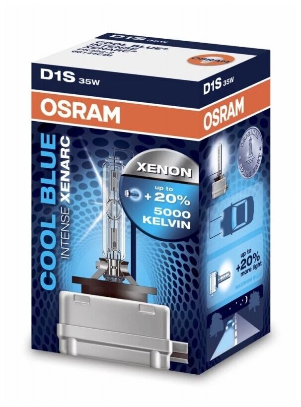 Osram 66140CBI Лампа ксеноновая Osram D1S 5500К Xenarc Cool Blue Intense 66140CBI - воплощение современного стиля и невероятной мощности! Данный высокотехнологичный продукт представляет собой результат инновационных разработок компании Osram и обеспечивает на 20% больше света на дороге. Благодаря особой системе наполнения колбы газом вместо обычного покрытия лампа излучает яркий голубовато-белый свет, привлекающий внимание и выделяющий вас в потоке машин. Легкая и быстрая установка в цоколь и долгий срок службы обеспечат комфортное использование лампы на протяжении всего срока.