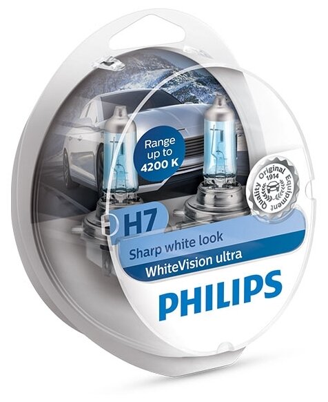 Philips H7 12V- 55W (PX26d) (абсолютно белый свет) WhiteVision ultra 2шт ULTRA H7 12В 55Вт 2 шт