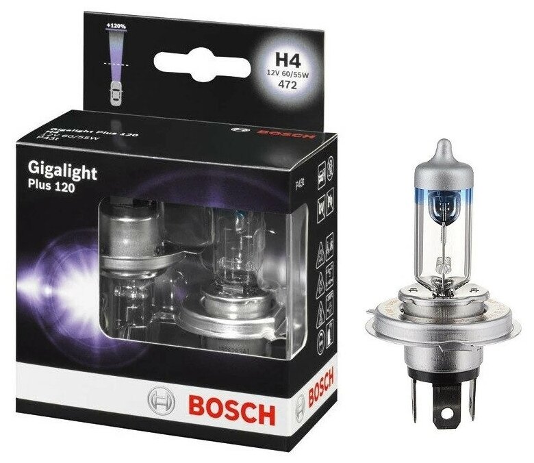 Bosch H4 12V- 60/55W (P43t) (+120% света) Gigalight Plus 120 2шт 1987301106