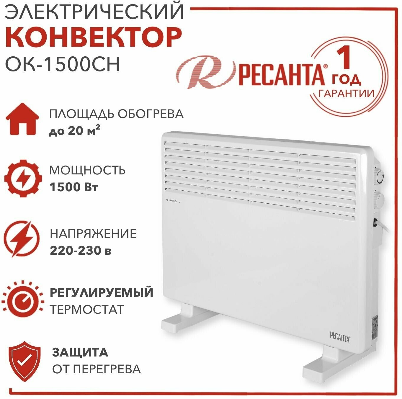 Конвектор РЕСАНТА ОК-1500СН 1500Вт белый [67/4/20]