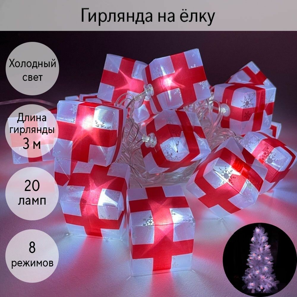Новогодняя светодиодная гирлянда ЭРА "Подарки" (арт. Б0041895) с необычным оформлением ламп. Каждая лампочка выполнена в форме красиво упакованного праздничного подарка. На полупрозрачном проводе длиной 3 метра размещены 20 миниатюрных светящихся подарков. Свет гирлянды - холодный белый, что отлично подходит к атмосфере зимних праздников и создаёт эффект снегопада. Провод гирлянды практически незаметен, складывается волшебное впечатление, что лампы висят в воздухе. Эта стильная современная гирлянда - быстрый и простой способ оригинально украсить к праздникам дом, офис или общественное пространство.