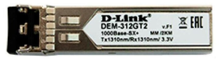 Модуль D-Link DEM-312GT2 Модуль Mini GBIC с 1 портом 1000Base-SX+ для многомодового оптического кабеля питание 33В (до 2 км)