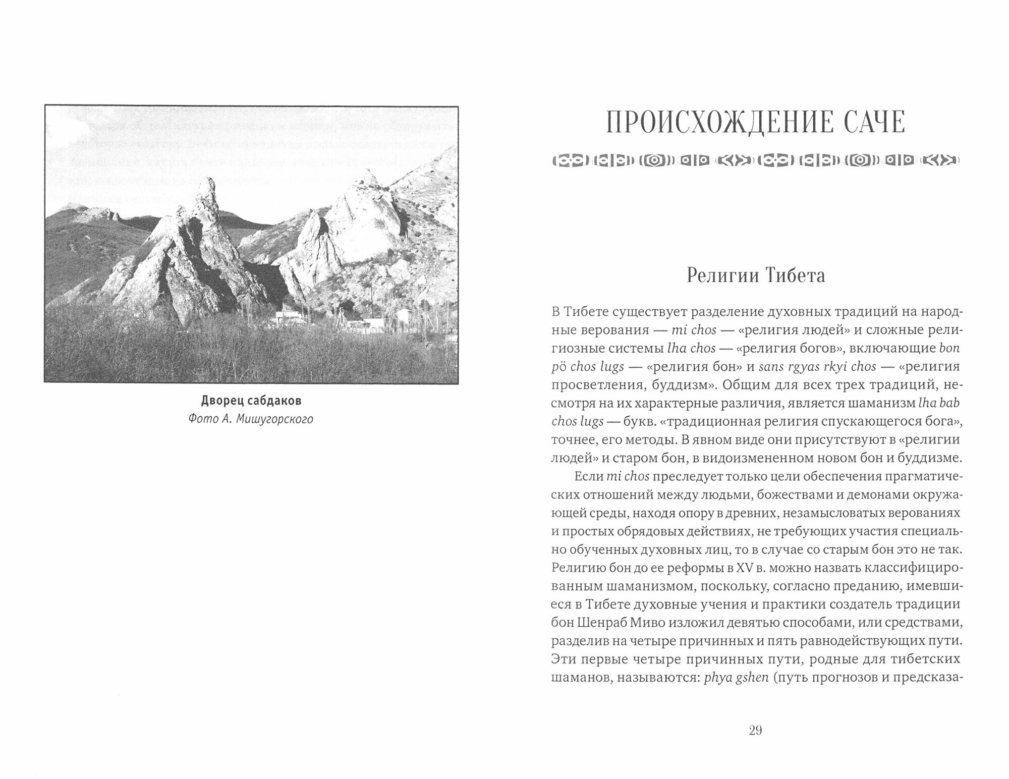 В мировоззрении тибетцев окружающая среда воспринимается как невербальный текст, где каждый объект соотносится с первичными элементами мироздания и в своем облике содержит тайные сведения, доступные для понимания только обученным специалистам. Форма объекта представляется опорой активности божественных или демонических существ, которые могут быть благоприятными, неблагоприятными или нейтральными к человеку. Взаимоотношения с одушевленными формами осуществляются с помощью умилостивительных, защитных или подчиняющих ритуалов. Обязательно производятся астрологические расчеты, позволяющие учесть временной фактор изменчивости состояния активности магических существ, определить благоприятные моменты для возведения зданий и культовых сооружений. В книге широко использованы материалы трактата XVII в. Vaidurya dkar po (Белый берилл), написанного крупнейшим тибетским ученым и политическим деятелем Сангье Гьяцо. Кроме того, привлечены сведения из научных трудов отечественных и иностранных тибетологов, культурологов и этнологов, а также из семинаров и вебинаров. Текст содержит большое количество иллюстраций и таблиц.