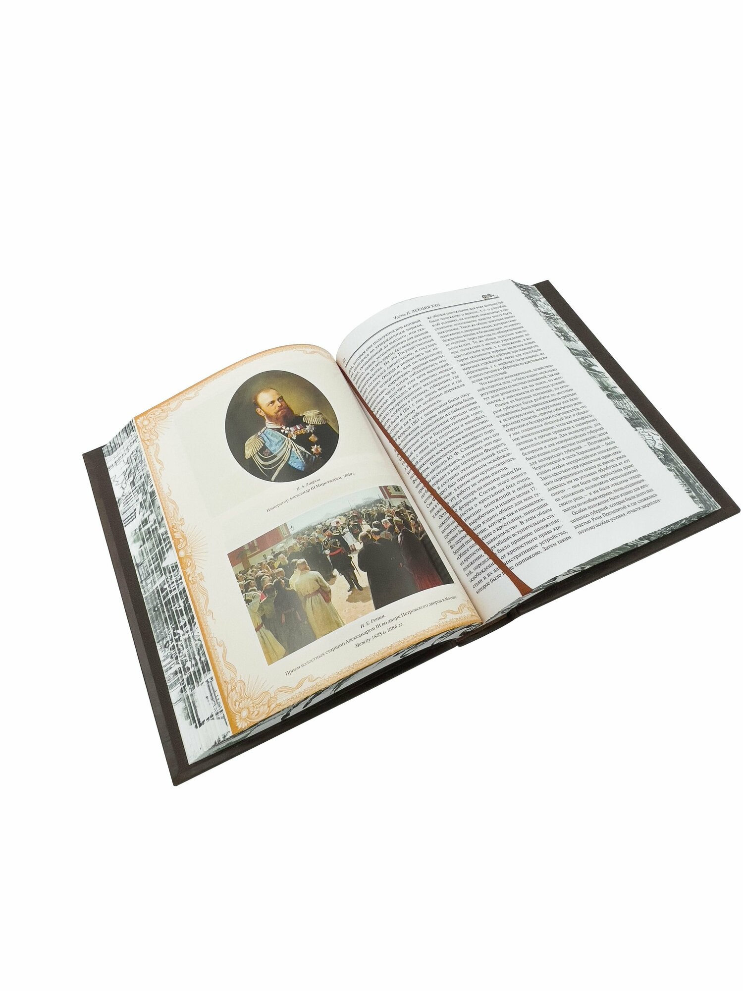 Прекрасная книга! Курс лекций состоит из трёх частей. В первой части - краткий очерк развития русского народа и государства до 19 века, также первая четверть 19 века. Во второй части - очерк истории России до 1866 года. В третьей части описан период реакции, наступившим в 1866 г. Книга написана очень интересно, прекрасным языком, легко читается. Множество черно-белых иллюстраций 19 века, также много вклеек с цветными картинками. Рекомендую! Книгу даже просто держать в руках приятно!