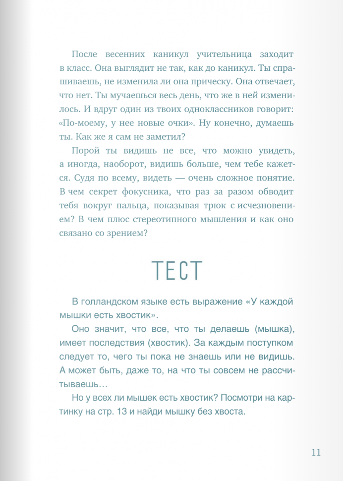 Авторы собрали огромное количество примеров, заданий, тестов, игр, чтобы ответить на эти и другие вопросы. Они не только описывают наше поведение в довольно типичных ситуациях, но и знакомят читателей с экспериментами, теориями и их авторами, которые помогли разобраться в некоторых механизмах нашего поведения. Но главное, они призывают нас думать самостоятельно и показывают, как можно этому научиться.