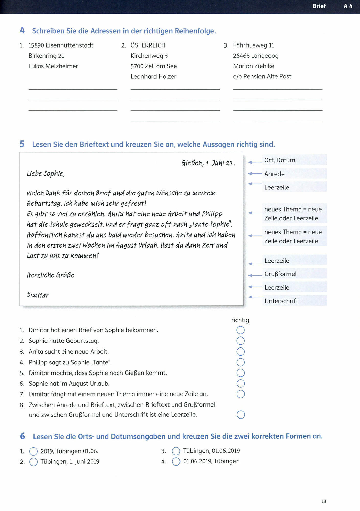 - Berucksichtigung relevanterTextsorten: Brief, E-Mail, Notiz, Kurznachricht, Formularetc.