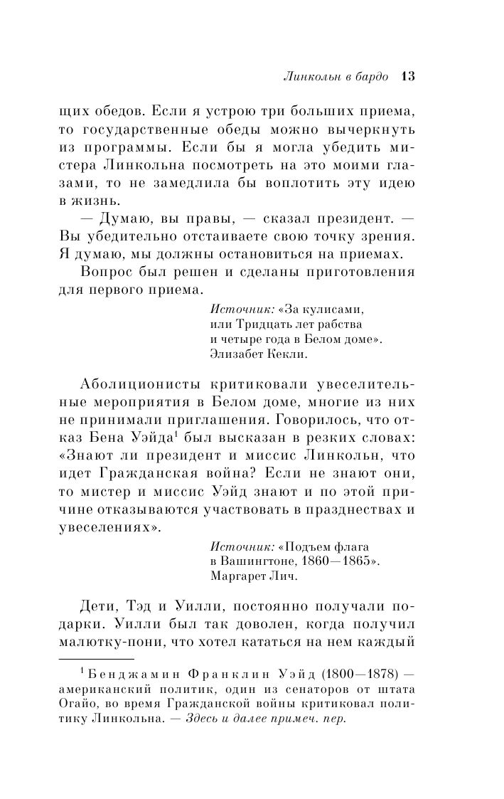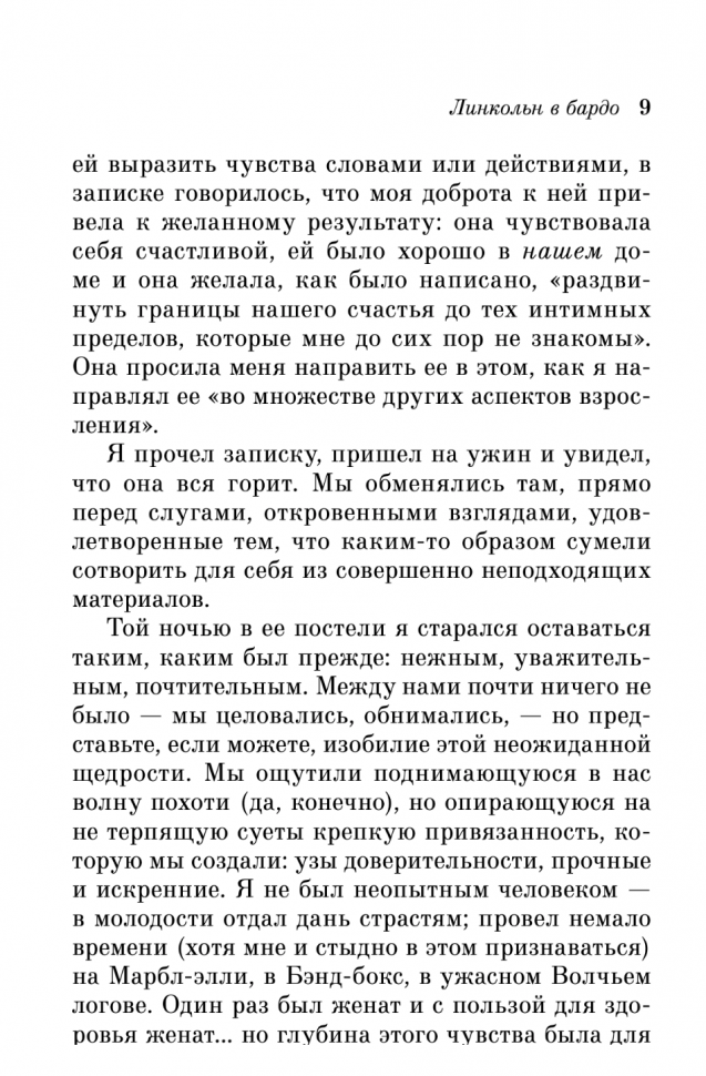 Роман-шедевр в прогрессивном жанре трансреализма: большая часть событий происходит в бардо - пограничном месте-состоянии между жизнью и смертью (в буддизме). Сондерс, блестящий мастер короткой формы, написал трагическую семейную историю со сверхъестественной атмосферой, преодолевая все жанровые условности. Наследник Эдгара По и Германа Мелвилла, Сондерс в "Линкольн в бардо" соединил поэтичность и исторические реалии, взяв за основу реальный случай с американским президентом и его маленьким сыном. Этот роман действительно перенесет вас за грань реальности.