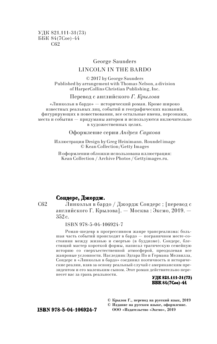 Книга: Линкольн в бардо (Джордж Сондерс); Эксмо, Редакция 1, 2019